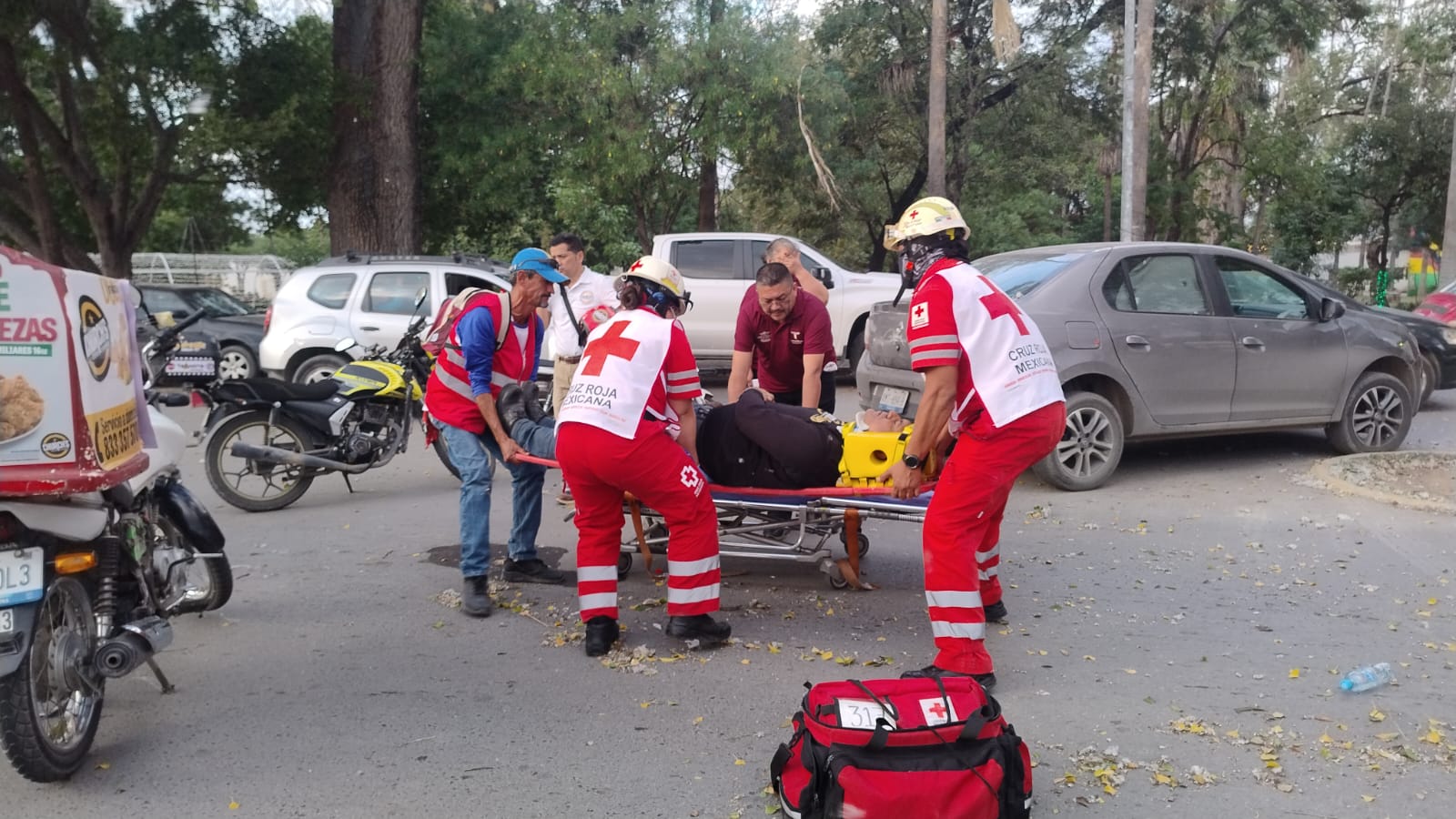Al lugar acudieron paramédicos de Cruz Roja Mexicana a bordo de la ambulancia 317, quienes después de darle los primeros auxilios al motociclista lo trasladaron a un hospital.