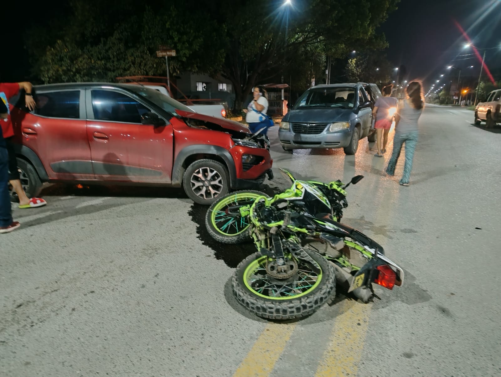 A la altura de la calle Ceferino Morales, al motociclista le cerró el paso un vehículo Renault Kwid, el cual circulaba en sentido de norte a sur.
