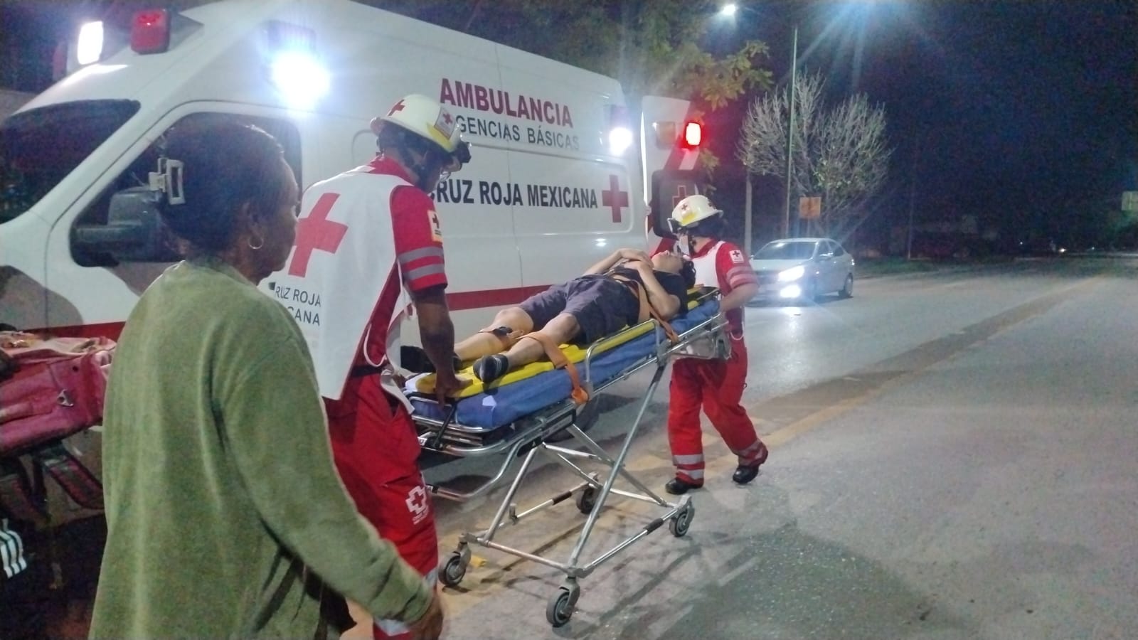 Fue en la ambulancia 319 donde los técnicos en urgencias médicas de Cruz Roja Mexicana trasladaron al motociclista lesionado al área de urgencias del Hospital Civil.