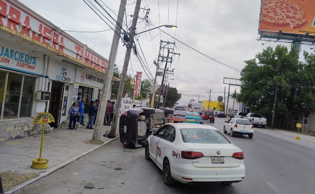 Vuelca auto en Av. Carrera Torres de Cd. Victoria, tras “cerrón” de una suburban; dos heridos
