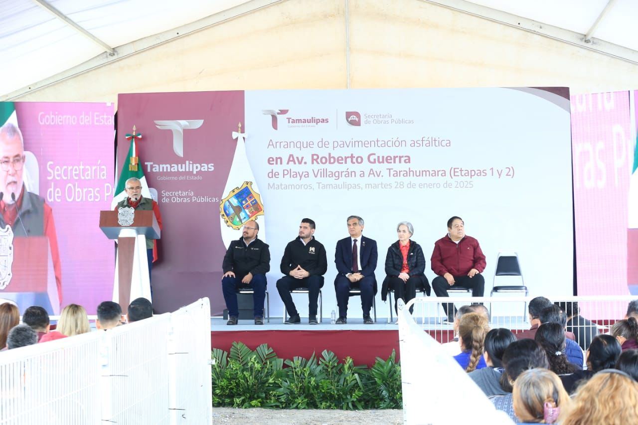 Como parte de su gira de trabajo, Villarreal Anaya dio el banderazo de inicio a la pavimentación asfáltica de la avenida Roberto Guerra, de playa Villagrán a la avenida Tarahumara, con un importe asignado de 38 millones 336 mil 533 pesos, en beneficio de más de 23 mil matamorenses.
