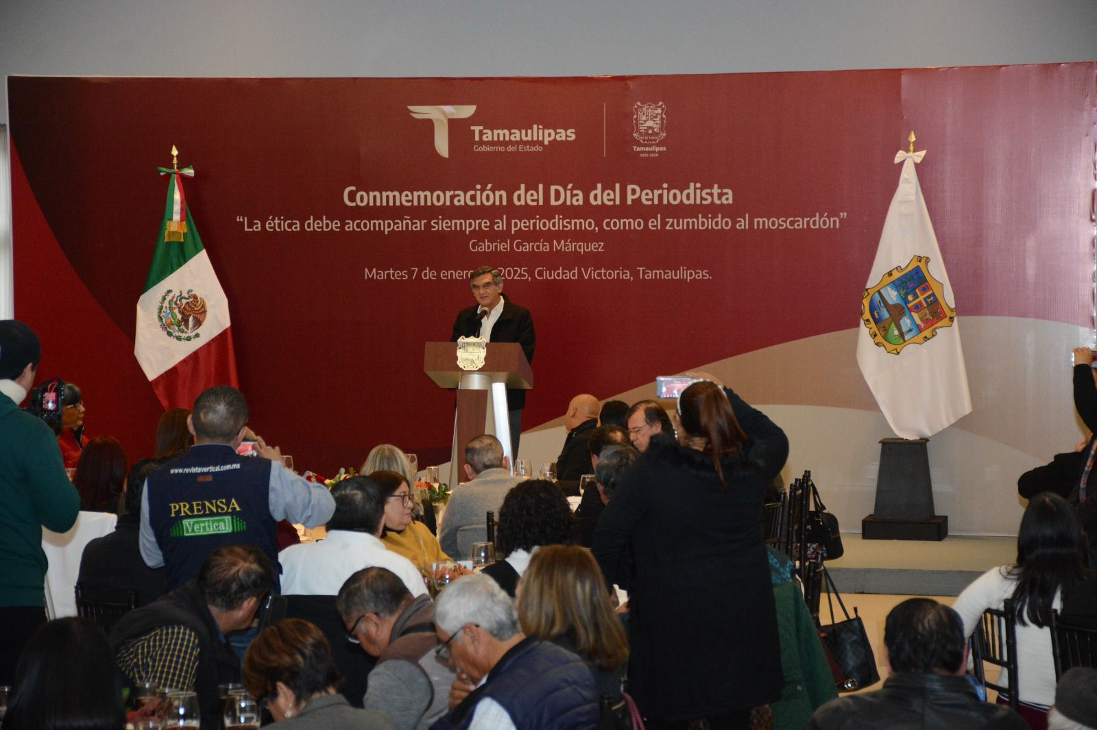 Al presidir la conmemoración del Día del Periodista y luego de pedir un minuto de silencio en memoria de don Manuel Montiel Govea, referente del periodismo tamaulipeco, quien falleció recientemente, el gobernador del Estado aseguró que esta es una buena ocasión para reconocer el compromiso de quienes día tras día dedican su vida a informar, interpretar, analizar y poner en contexto la realidad de nuestro estado.