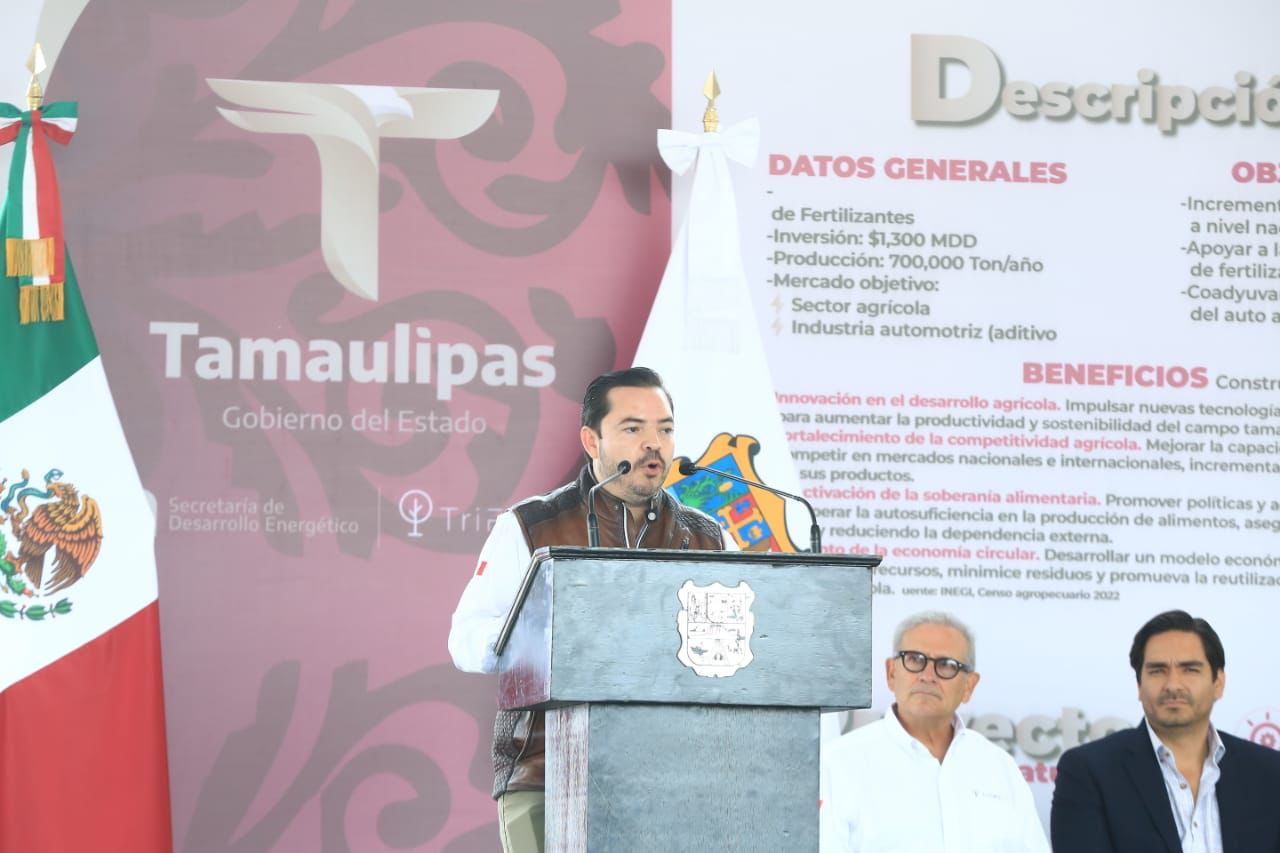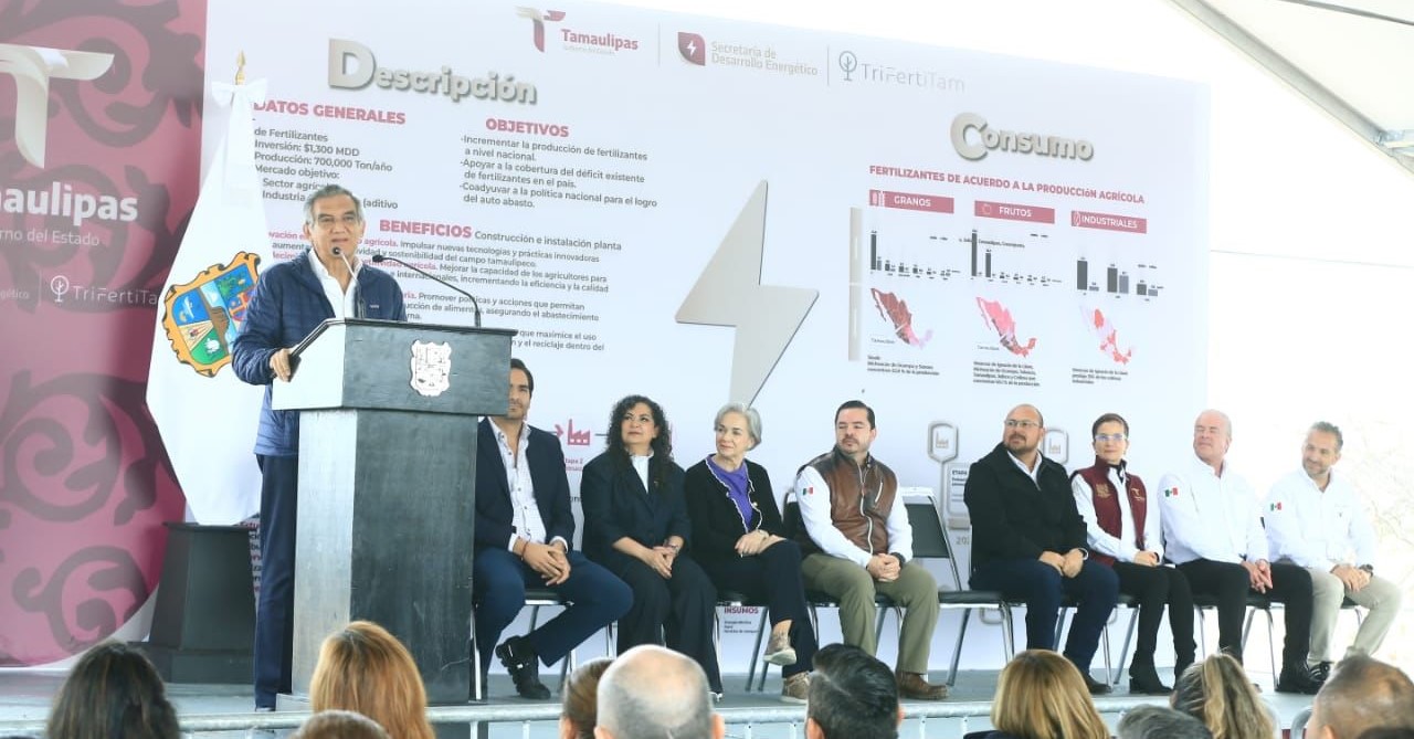 Por su parte, José Ramón Silva Arizabalo, secretario de Energía, aseguró que Tamaulipas contribuirá desde el sector energético impulsando la agricultura con la disponibilidad de fertilizantes de alta calidad y a precios competitivos que permitirán a nuestros agricultores mejorar la productividad y el rendimiento de sus cultivos.