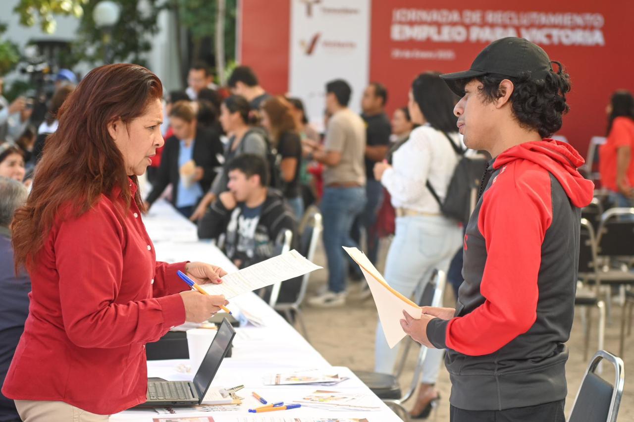 En su mensaje de inauguración de la Jornada de Reclutamiento “Empleo para Victoria”, donde participaron 25 empresas locales y dependencias de seguridad pública con 710 vacantes, reconoció el compromiso de todos los sectores por contribuir en el bienestar y calidad de vida de las familias victorenses y fortalecimiento de la economía local.