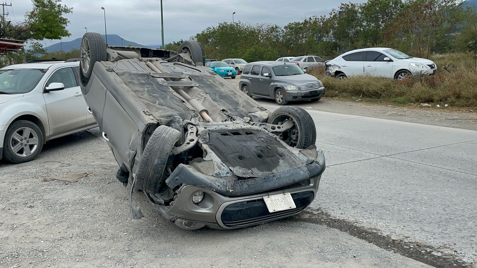 Carambola vehicular con volcadura en Eje Vial “Lázaro Cárdenas” de Cd. Victoria; dos heridos