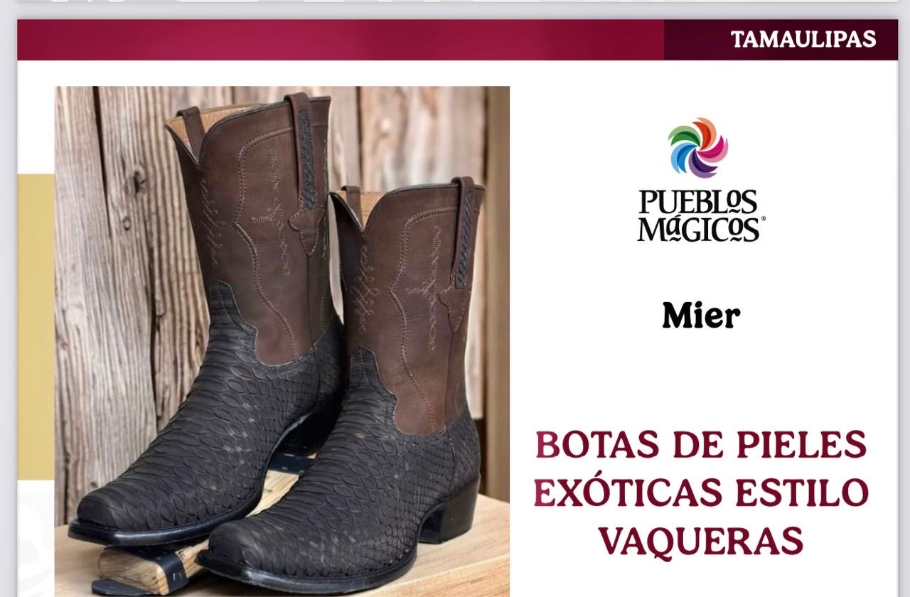 Ciudad Victoria, Tamaulipas.- La Cuera Tamaulipeca y las botas de pieles exóticas estilo vaquero, originarias de Tula y Mier, forman parte del catálogo de artesanías de los Pueblos Mágicos de México, elaborado por la Secretaría de Turismo federal.