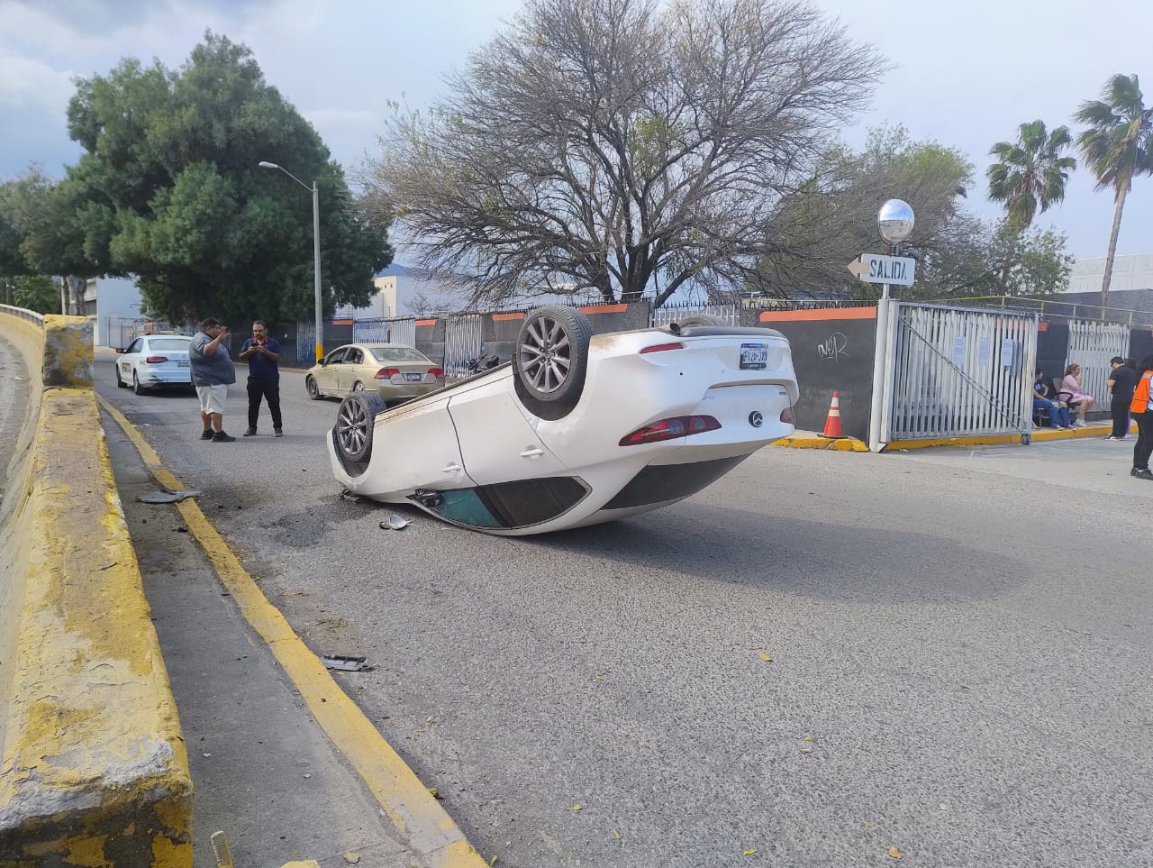 En su posición final el automóvil quedó volcado con las cuatro llantas hacia arriba.