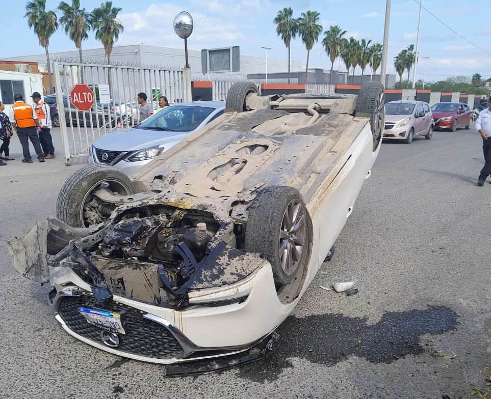 El aparatoso accidente ocurrió cuando ambas mujeres (madre e hija) circulaban a bordo de un automóvil de la marca Mazda en sentido de oriente a poniente por el bulevar Adolfo López Mateos.
