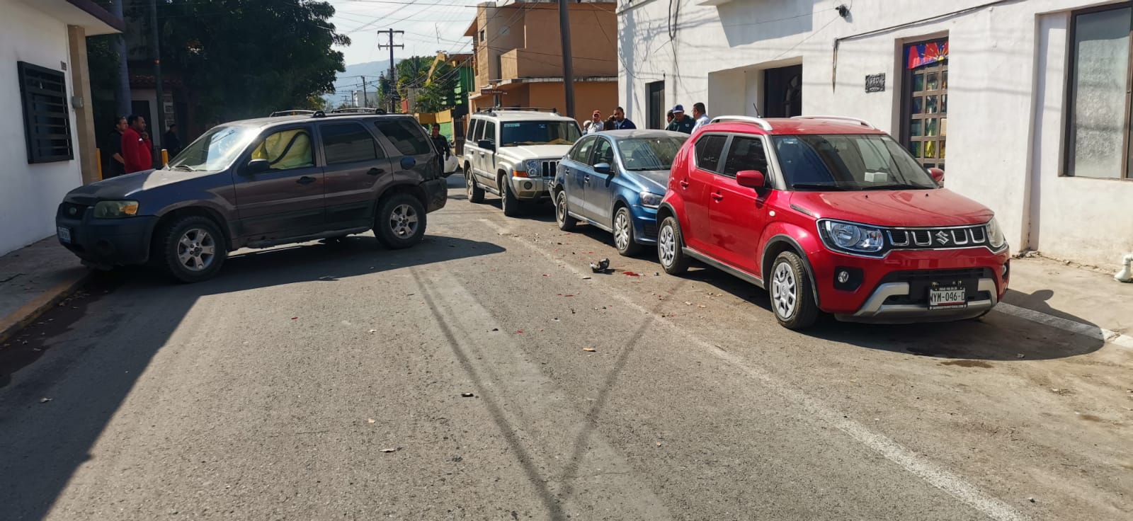 Cabe señalar que derivado del choque múltiple quedó obstruida la vialidad en la calle 18 entre Ocampo y Méndez, toda vez que la camioneta Escape quedó atravesada en el lugar.