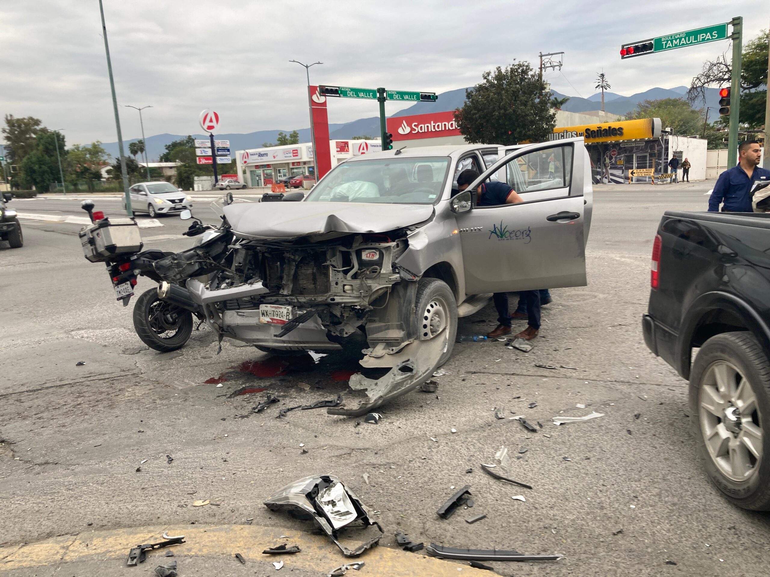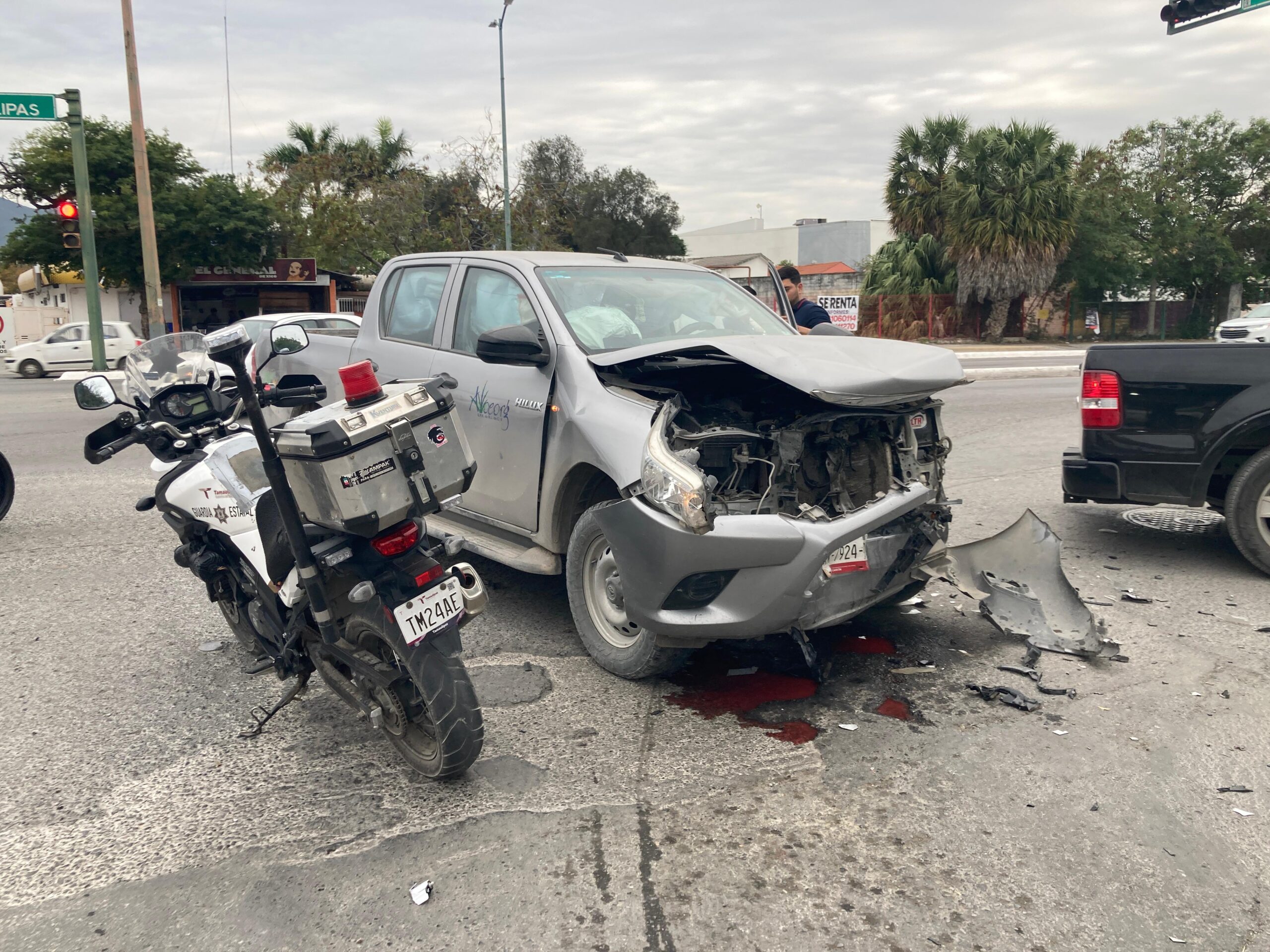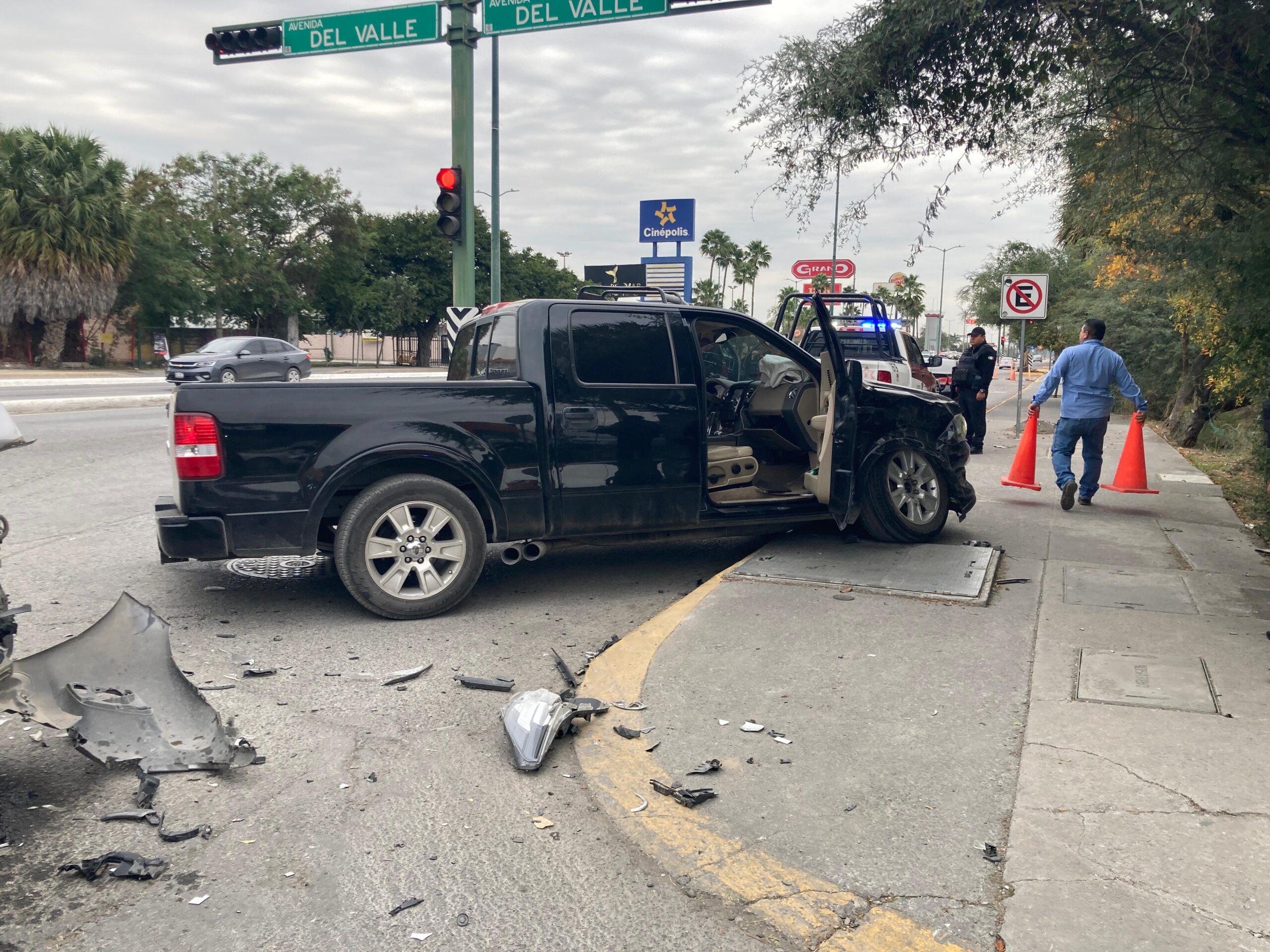 El accidente, que dejó cuantiosos daños materiales, ocurrió cuando una camioneta de la marca Ford tipo F150 circulaba en sentido de norte a sur por la calle Ocho o Bulevar Tamaulipas.
