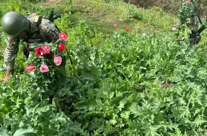 De acuerdo con la información proporcionada por la instancia castrense, se logró la destrucción de 157 plantíos de amapola que se ubicaron en 19.7 hectáreas y 94 plantíos de marihuana en 5.4 hectáreas.
