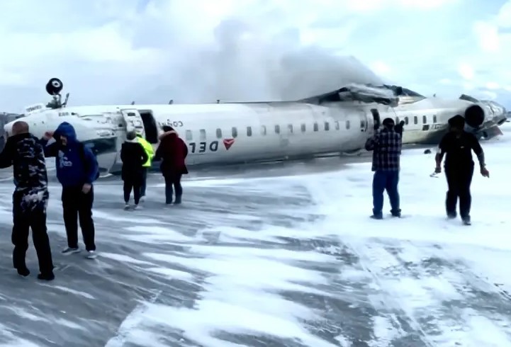 La aeronave procedente de Minneapolis, Minnesota, volcó durante el impacto y quedó de cabeza en la pista del aeropuerto Toronto Pearson en Canadá, además de que perdió las alas. Tras el percance, servicios de emergencia llegaron inmediatamente al lugar para brindar auxilio.