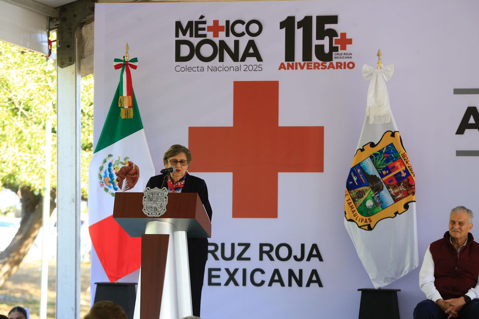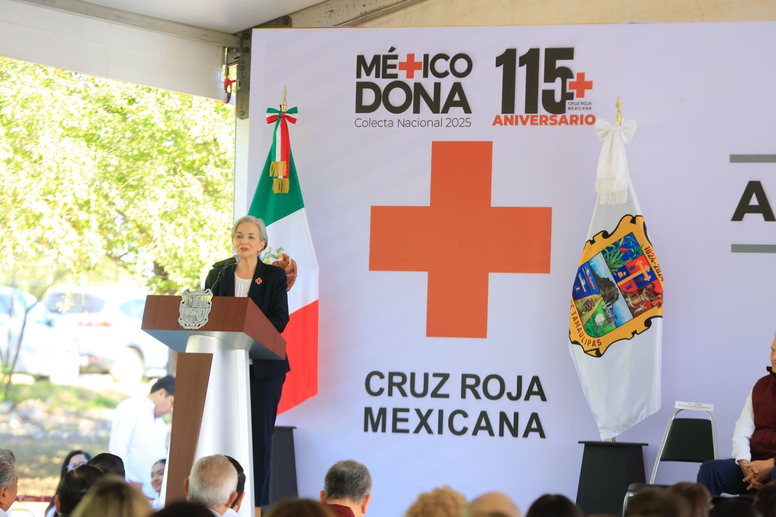 Por su parte, la delegada estatal de la Cruz Roja, Graciela Guerra de Araujo, brindó un reconocimiento al gobernador Américo Villarreal por el apoyo brindado a la institución y se refirió al trabajo realizado en coordinación con el DIF Estatal, Protección Civil, la Secretaría de Salud y en la estrategia de repatriación “México te Abraza”.