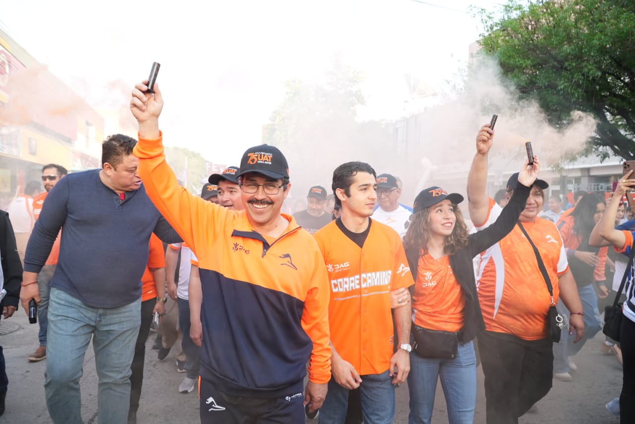 A lo largo del recorrido por las principales calles de Ciudad Victoria, la afición universitaria se hizo notar con un ambiente festivo sumándose a la pasión por Correcaminos y reafirmando el compromiso con el deporte universitario.