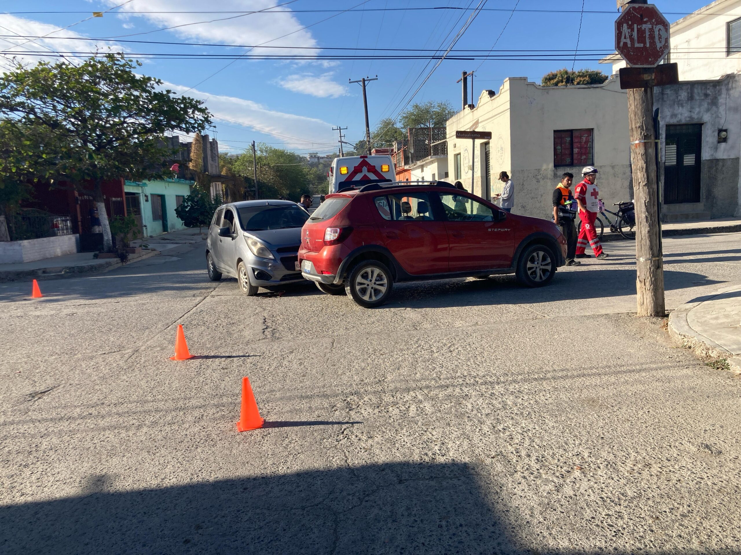 Al llegar al crucero con la calle Mutualismo la conductora del Spark omitió una señal fija de alto y se estrelló contra un vehículo Renault tipo Sandero que circulaba de oriente a poniente.
