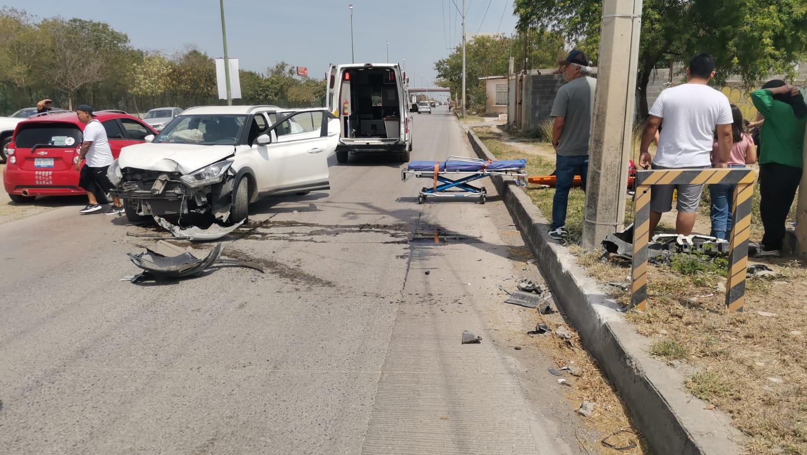 La conductora de la camioneta trató de retomar el rumbo, sin embargo, volvió a estrellarse contra la guarnición de la banqueta, dándole un “rozón” a un poste de concreto y a una contención metálica.