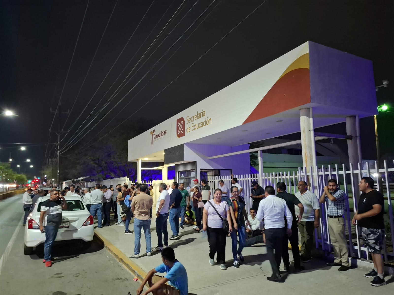 CD. VICTORIA, TAMAULIPAS. – Esta noche, alrededor de 60 maestros de la Sección 30 del Sindicato Nacional de Trabajadores de la Educación cerraron con cadena y candado las oficinas centrales de la Secretaría de Educación de Tamaulipas que se encuentran sobre la Calzada General Luis Caballero.