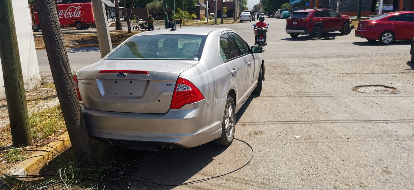 El accidente que dejó cuantiosos daños materiales ocurrió cuando un automóvil de la marca Ford tipo Fusion sin placas de identificación vehicular circulaba por la calle 13 en sentido del norte a sur.