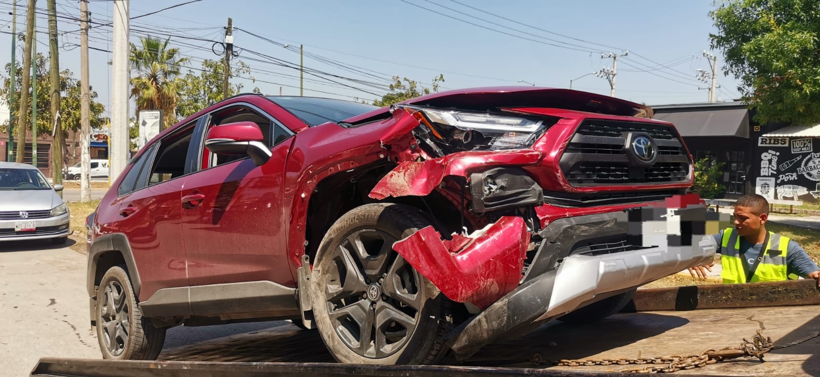Al llegar al crucero con el Bulevar Adolfo López Mateos, y tratar de cruzar los carriles en sentido de oriente a poniente, el conductor del Fusion excedió el límite de alto y fue impactado por un costado por una camioneta de la marca Toyota con placas de Tamaulipas.