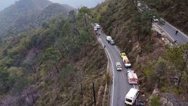 Con el apoyo de un helicóptero, las autoridades continúan en la zona, donde también se reportó un incendio forestal tras el siniestro.