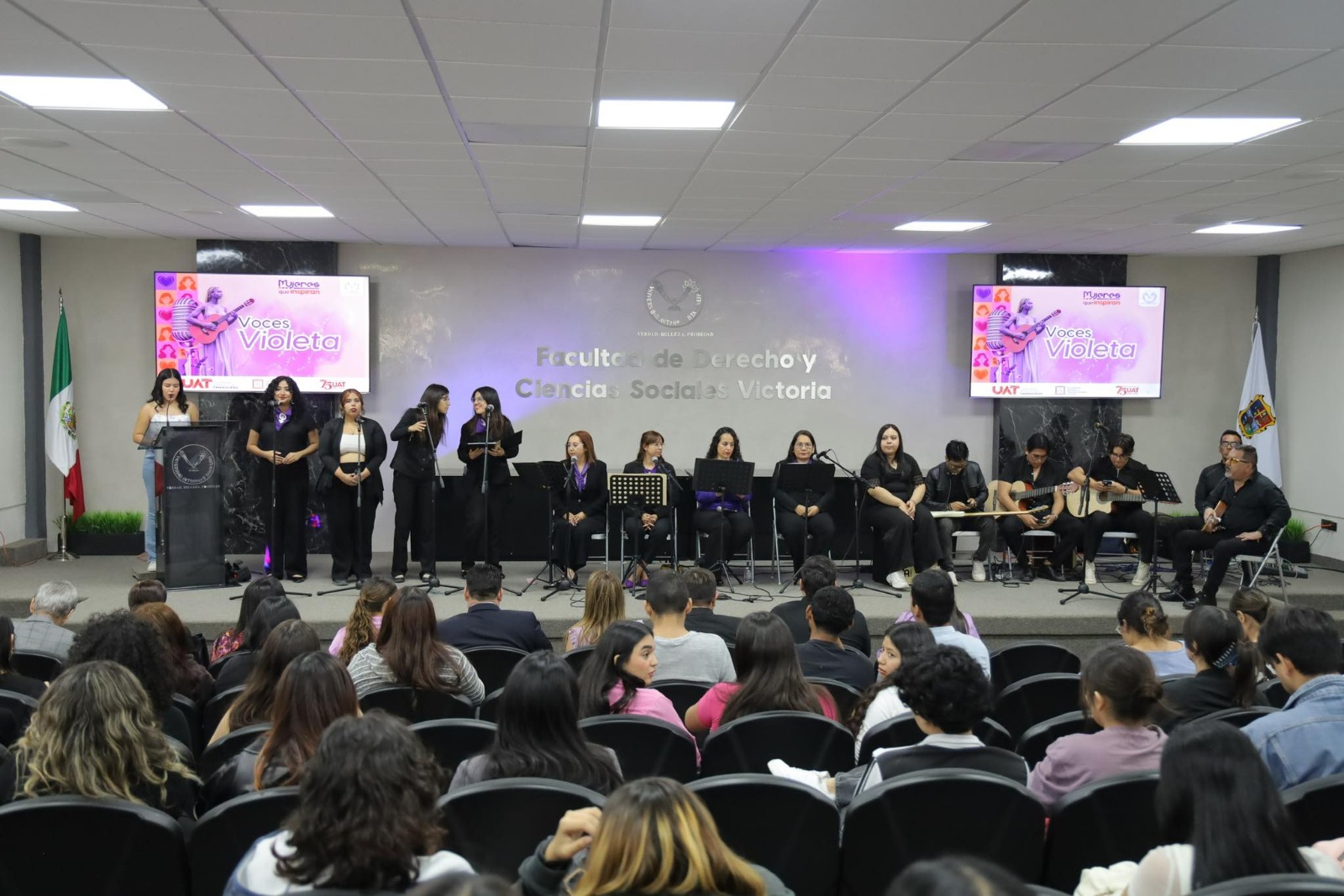 Los festejos iniciaron con el Recital “Voces Violeta”, un espacio de expresión artística en el que estudiantes, docentes y autoridades universitarias reflexionaron sobre la lucha por la igualdad de género mediante la música, la poesía y la declamación.