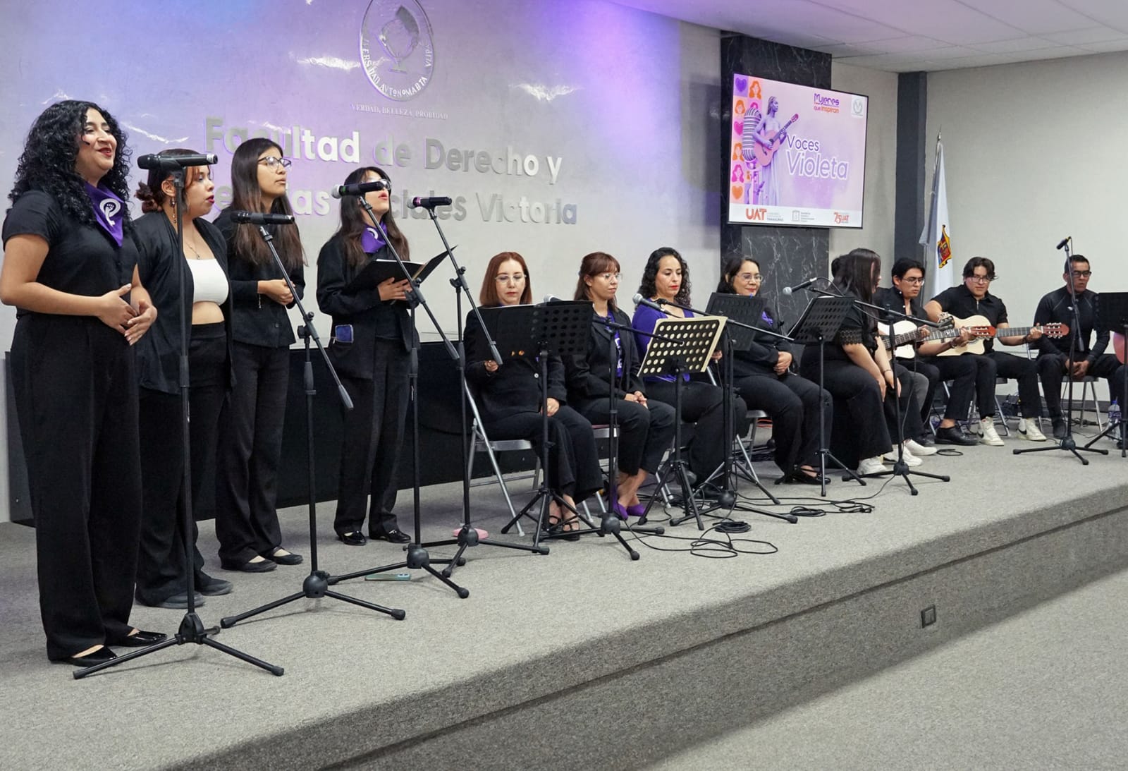 La Universidad Autónoma de Tamaulipas (UAT) llevó a cabo la presentación del recital "Voces Violeta", dirigido a estudiantes universitarias, en un espacio de lecturas y canciones que reflejan el papel de la mujer en la sociedad y su lucha por la equidad.
