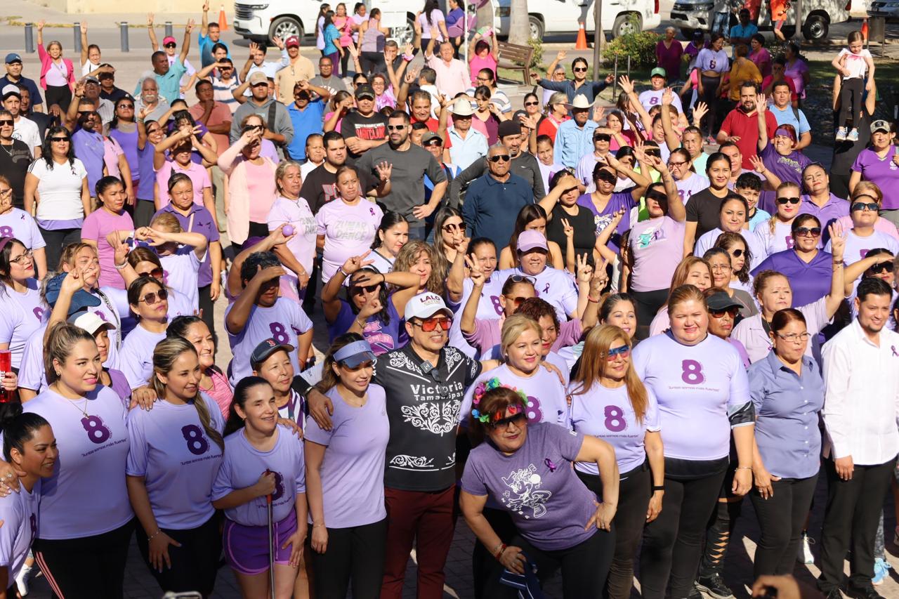 Cd. Victoria, 8 de Marzo 2025. – Con ritmo y energía, más de 200 mujeres celebraron con un Zumbaton el Día Internacional de la Mujer que se conmemora este 8 de marzo, evento que fue encabezado por el presidente municipal de Victoria Eduardo Gattás Báez y su esposa Lucy Rodríguez de Gattás.
