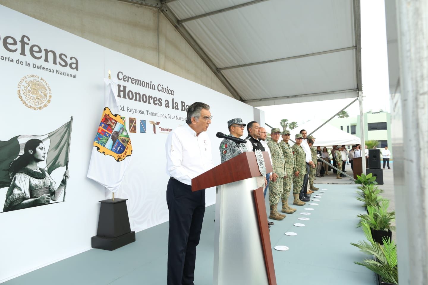 “En nombre del pueblo y gobierno de Tamaulipas, por este conducto, general Diplomado de Estado Mayor, comandante de la IV Región Militar, haga usted el favor de expresar nuestra gratitud y reconocimiento a las y los elementos del Ejército Mexicano, de la Guardia Nacional, de las Fuerzas Federales y de la Marina Armada de México por su presencia y colaboración en estos objetivos de nuestra convivencia”, expresó el mandatario, quien hizo extensivo su reconocimiento a la Guardia Estatal.