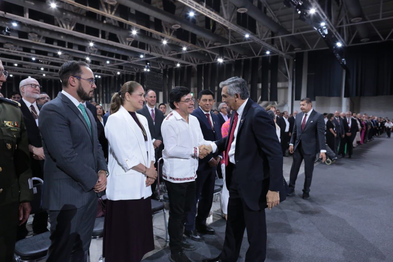 Acompañado por la doctora María de Villarreal, presidenta del DIF Estatal; la gobernadora de Veracruz, Rocío Nahle García; el gobernador de Oaxaca, Salomón Jara Cruz; el gobernador de Puebla, Alejandro Armenta Mier; y el coordinador de asesores de la Presidencia de la República, Jesús Ramírez Cuevas, así como representantes de las gobernadoras de Tlaxcala, San Luis Potosí, Quintana Roo, Nuevo León, Zacatecas y Coahuila, además del presidente de la Cámara de Diputados, Sergio Gutiérrez Luna, senadores, senadoras y diputados federales y locales, el gobernador les agradeció su presencia.
