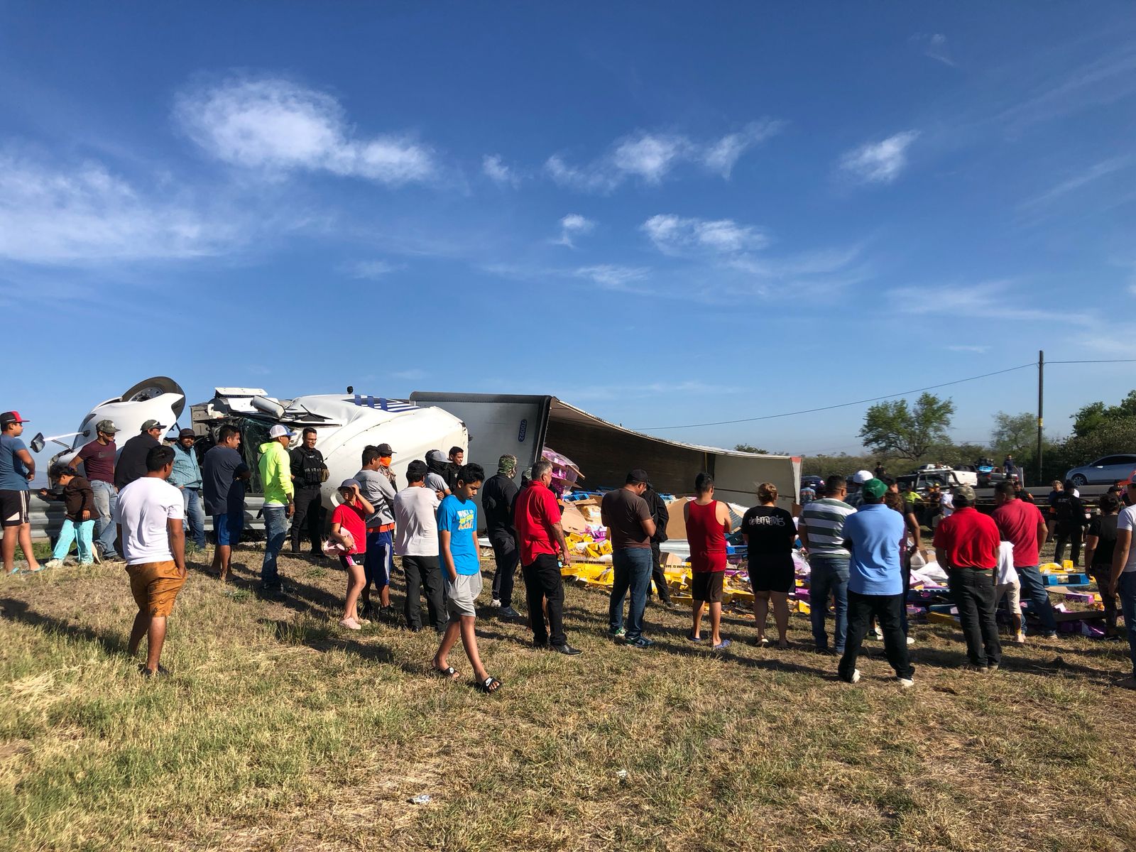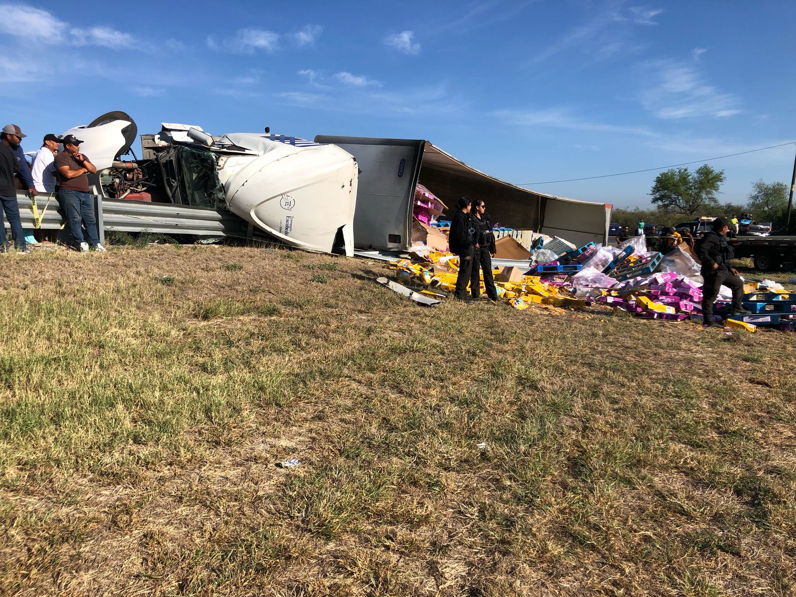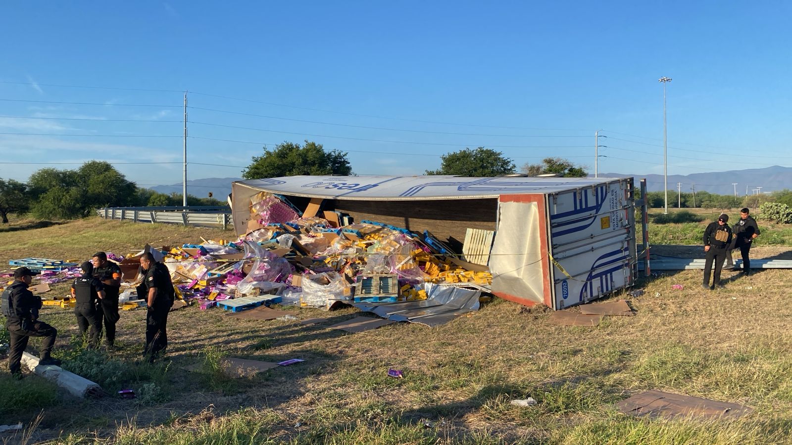 Vuelca tráiler en la carretera Cd. Victoria- Soto la Marina; “rapiñeros” hurtan la carga