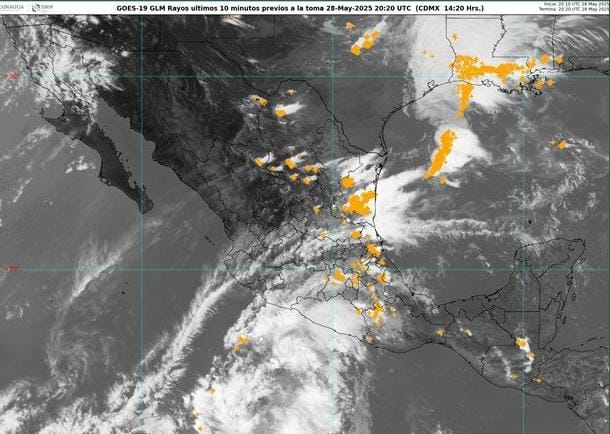 Cabe señalar que el Servicio Meteorológico Nacional informó que esta tarde se registran descargas eléctricas en Chihuahua, Durango, Coahuila, Nuevo León, Tamaulipas, San Luis Potosí, Zacatecas Hidalgo, Estado de México, Ciudad de México, Puebla, Tlaxcala, Veracruz, Michoacán, Guerrero, Oaxaca, Chiapas y Golfo de México.
