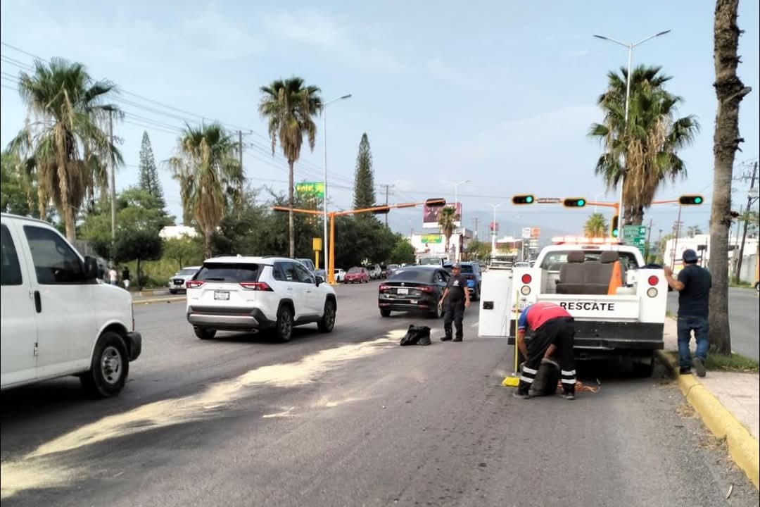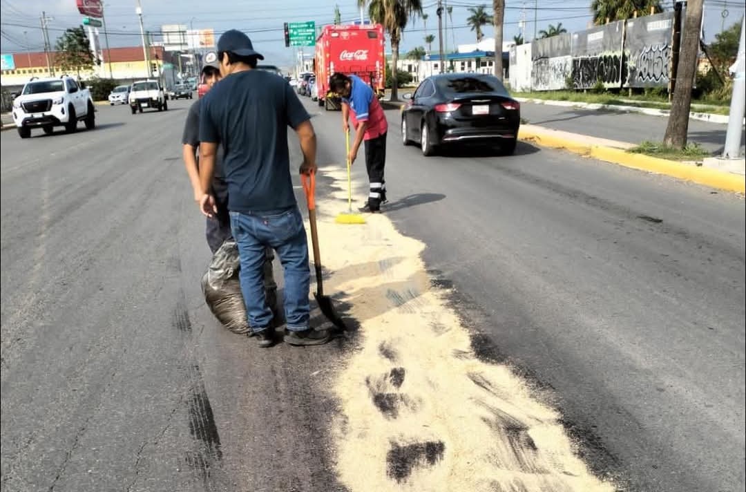 CD. VICTORIA, TAMAULIPAS.- Esta mañana, la unidad 28 de Protección Civil y Bomberos atendió un reporte de derrame de aceite en la Avenida José Sulaimán.
