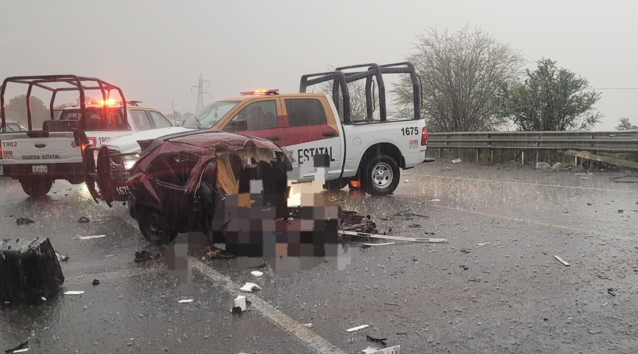 Fue a la altura del municipio de Villagrán donde un automóvil Chevrolet Chevy, quedó partido a la mitad, y una camioneta tipo SUV quedó volcada a un costado de la carretera.