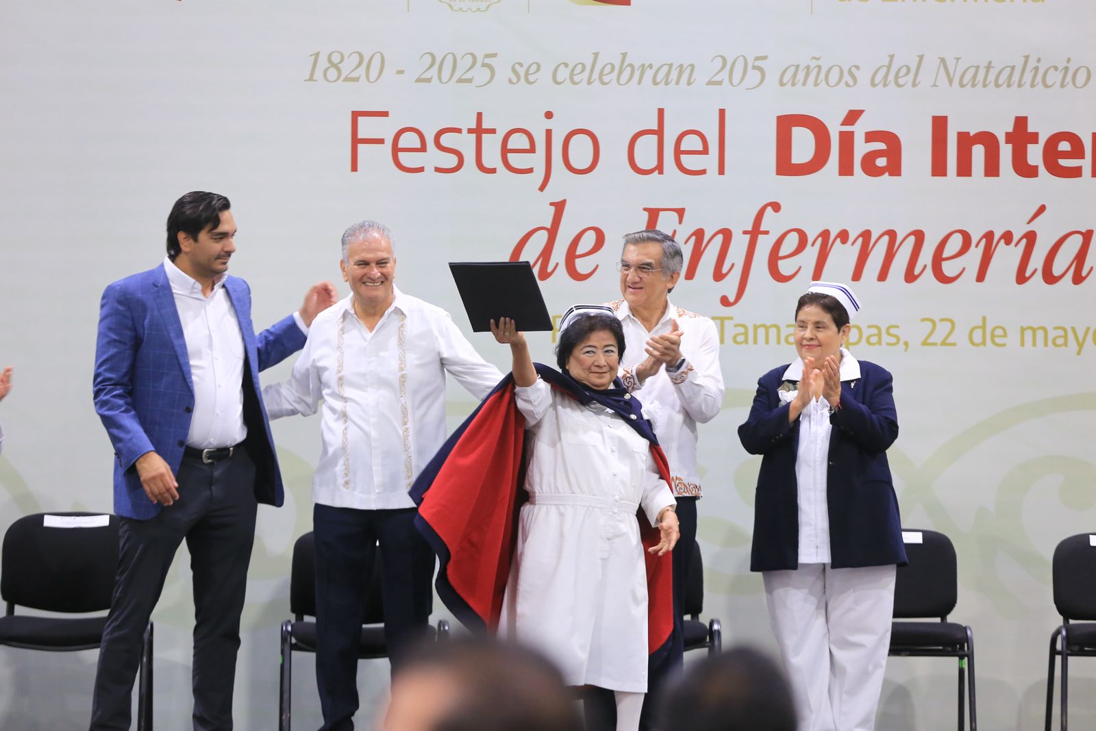 Por su parte, el secretario de Salud, Vicente Joel Hernández Navarro, afirmó que este reconocimiento es un compromiso cumplido del gobernador Américo Villarreal y un homenaje a la vocación de servicio, la trayectoria, el liderazgo de las y los enfermeros de Tamaulipas, “con el que día a día brindan cuidados de calidad al paciente, a su familia y a la comunidad”, dijo.