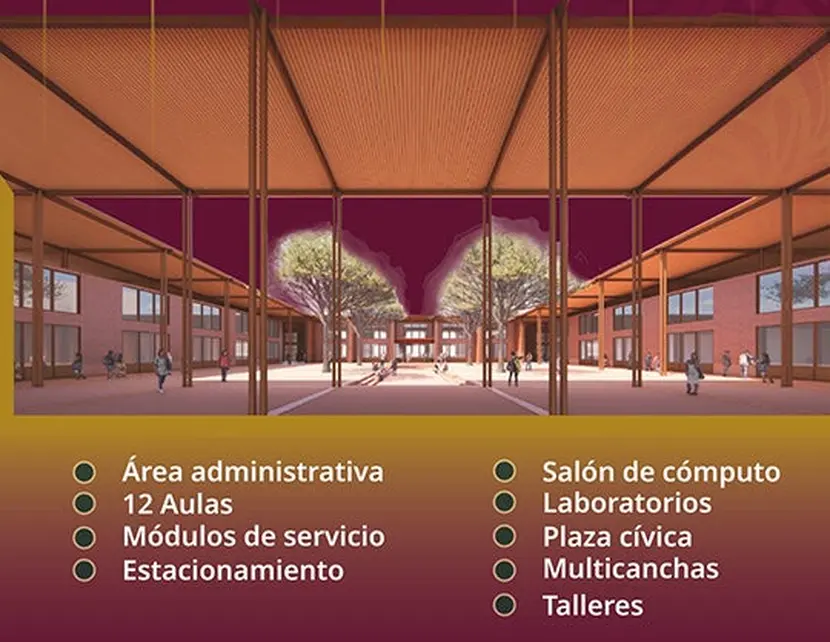 La infraestructura educativa que la SICT llevará a cabo será un complejo que alojará al Bachillerato Tecnológico. Consta de un edificio de tres niveles para 12 aulas didácticas, un laboratorio multifuncional, tres aulas de cómputo, un área administrativa, una sala de maestros, sanitarios y equipamiento básico.