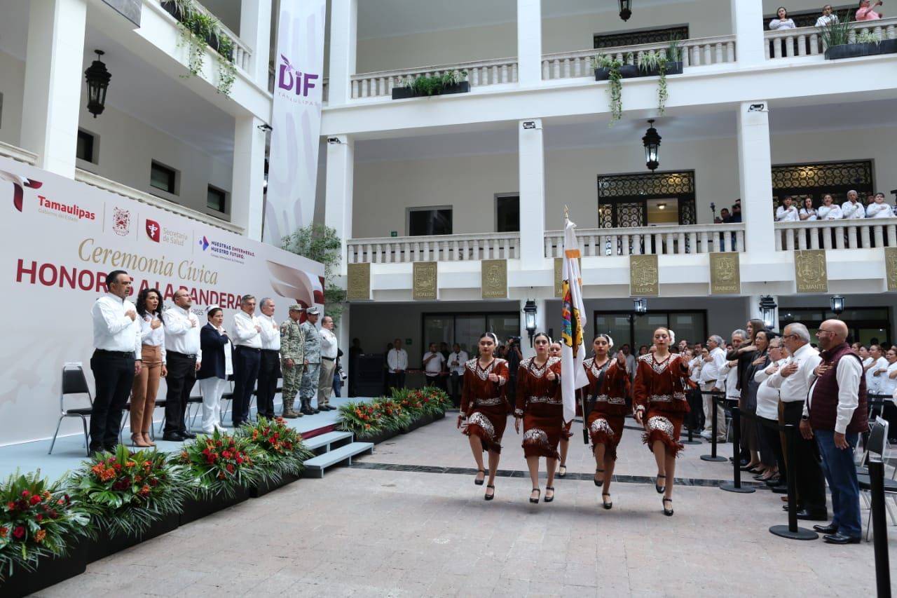 Durante la ceremonia cívica, el juramento a la bandera estuvo a cargo de Diana Karina Pedraza Muñoz, mientras que Blanca Azucena Compeán Barrón y Azucena Moreno Rocha dieron lectura a las efemérides de la semana.
