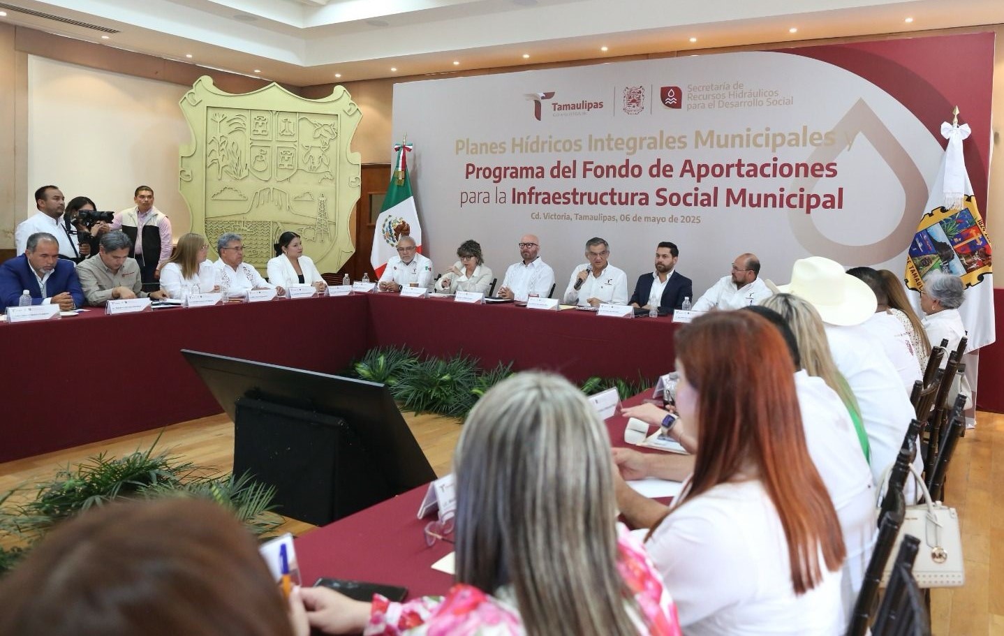Al presidir la reunión para evaluar el estatus de los Planes Hídricos Integrales Municipales y conocer los avances del programa Fondo de Aportaciones para la Infraestructura Social Municipal (FAISMUN), en el Salón Independencia de Palacio de Gobierno, aseguró que el uso correcto del agua permitirá a Tamaulipas contar con una ventaja estratégica y competitiva más, a fin de alentar la presencia de otros polos de desarrollo en nuestra entidad.