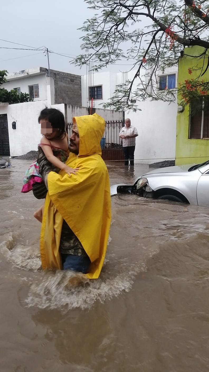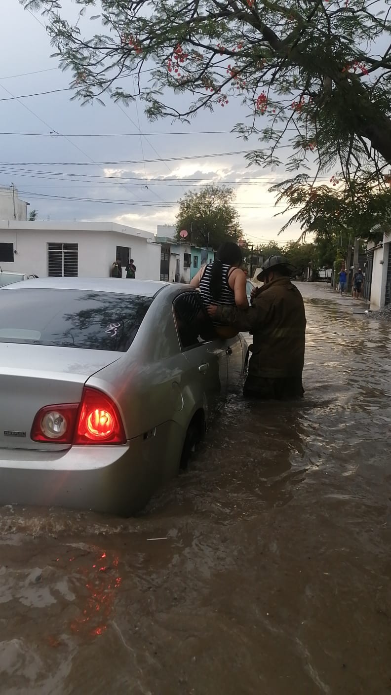 Un motociclista también fue rescatado tras ser arrastrado por la corriente y además se atendió el reporte de personal directivo de las primarias Benito Juárez de la colonia Lázaro Cárdenas y Rosendo Lara del Ejido Guadalupe Victoria.