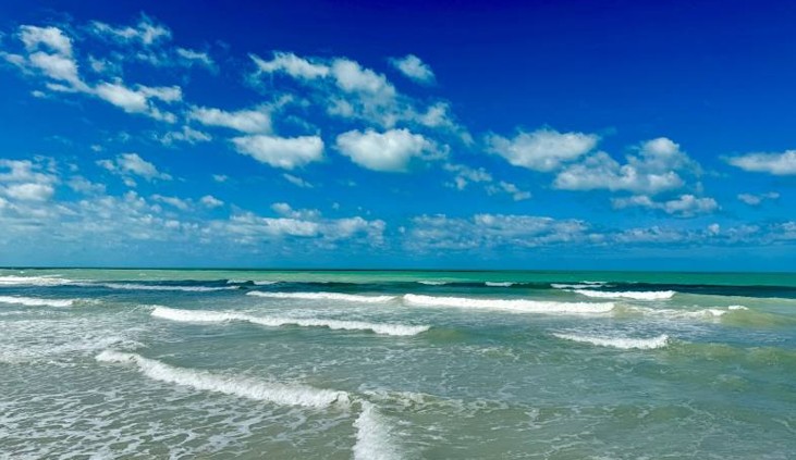 Las costas de Tecolutla ofrecen un ambiente sereno con oleaje suave y cielos despejados para disfrutar del mar.