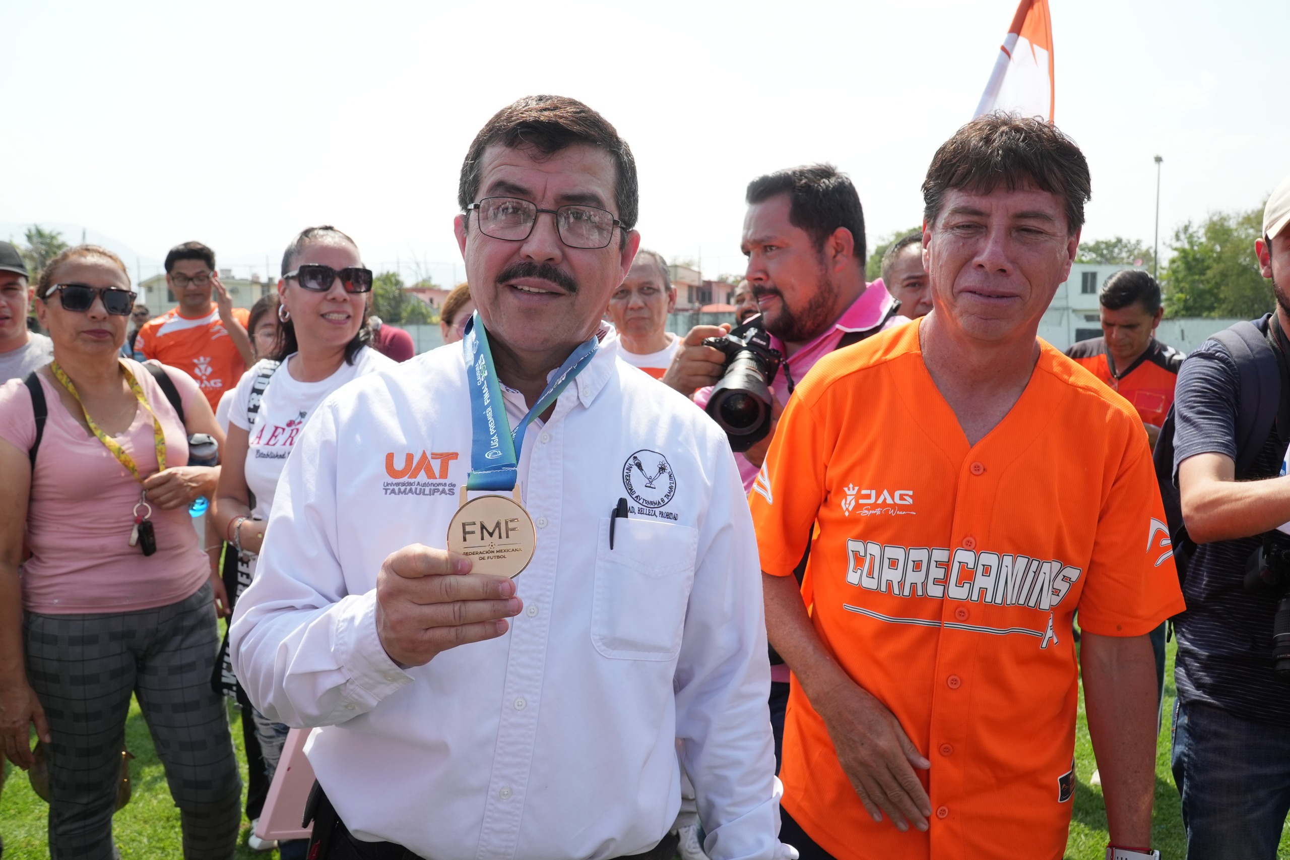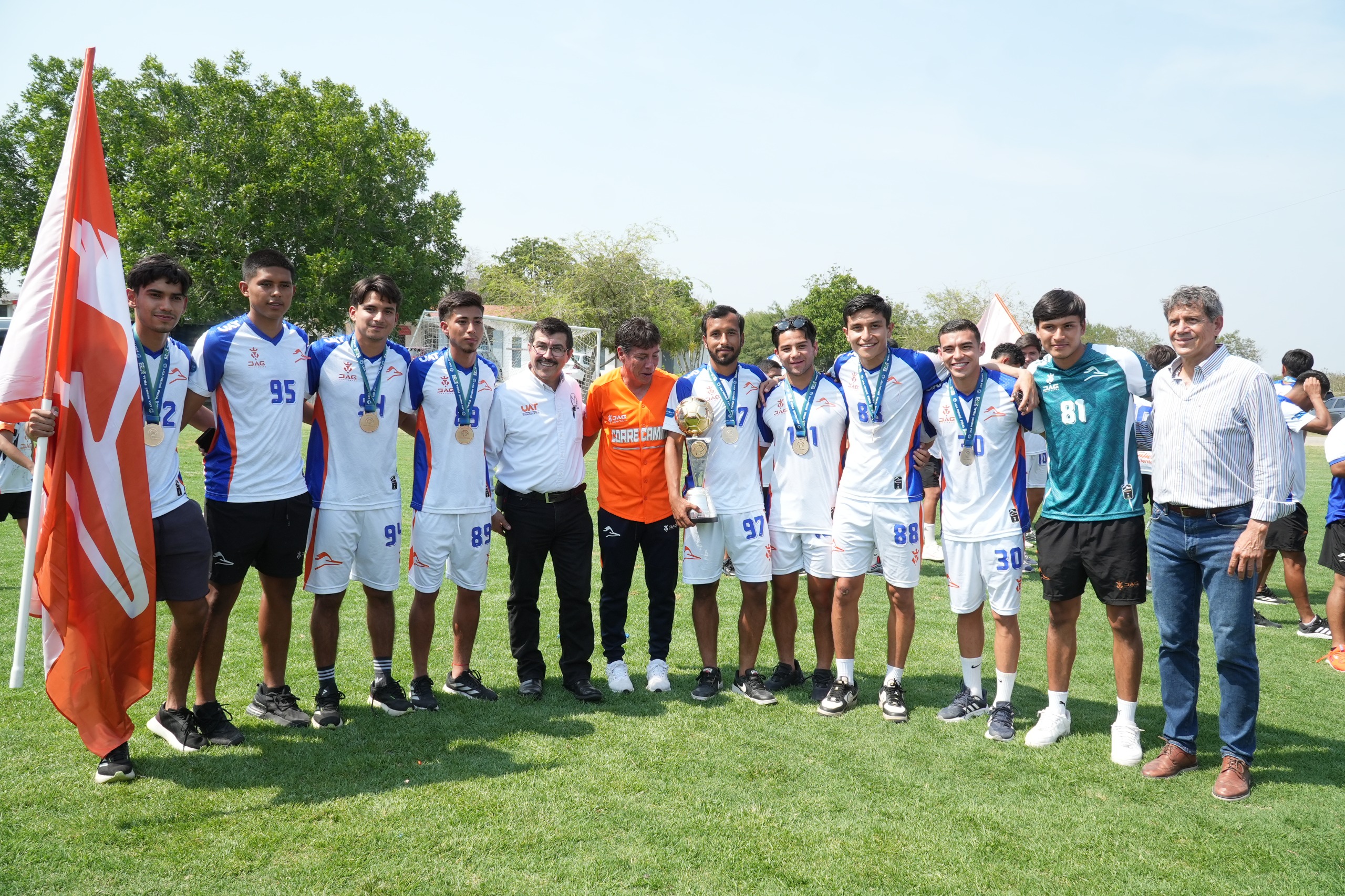 El rector felicitó personalmente a cada uno de los jugadores, reconociendo el esfuerzo, la disciplina y el compromiso que demostraron en cada etapa del torneo. Compartió con ellos la alegría del triunfo, alzando el trofeo y portando la medalla de campeón como muestra del orgullo que representa este logro, no solo para la Universidad, sino también para Tamaulipas.