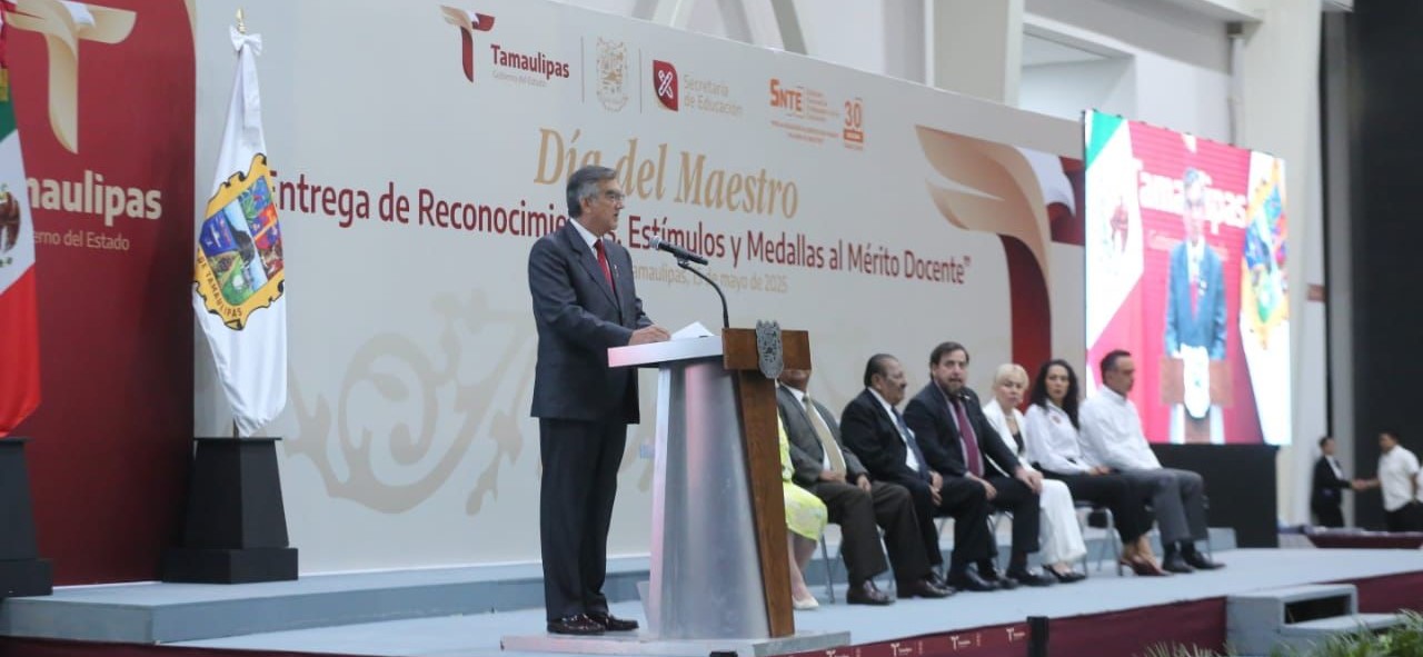 Ciudad Victoria, Tamaulipas. – Las y los maestros son el eje gravitacional del desarrollo de nuestra educación y del futuro de nuestra sociedad, afirmó el gobernador Américo Villarreal Anaya al presidir los eventos conmemorativos por el Día del Maestro y la Maestra, para reconocer con respeto y gratitud “a quienes han dedicado su vida a la docencia, a educar y formar generaciones de seres humanos plenos”.
