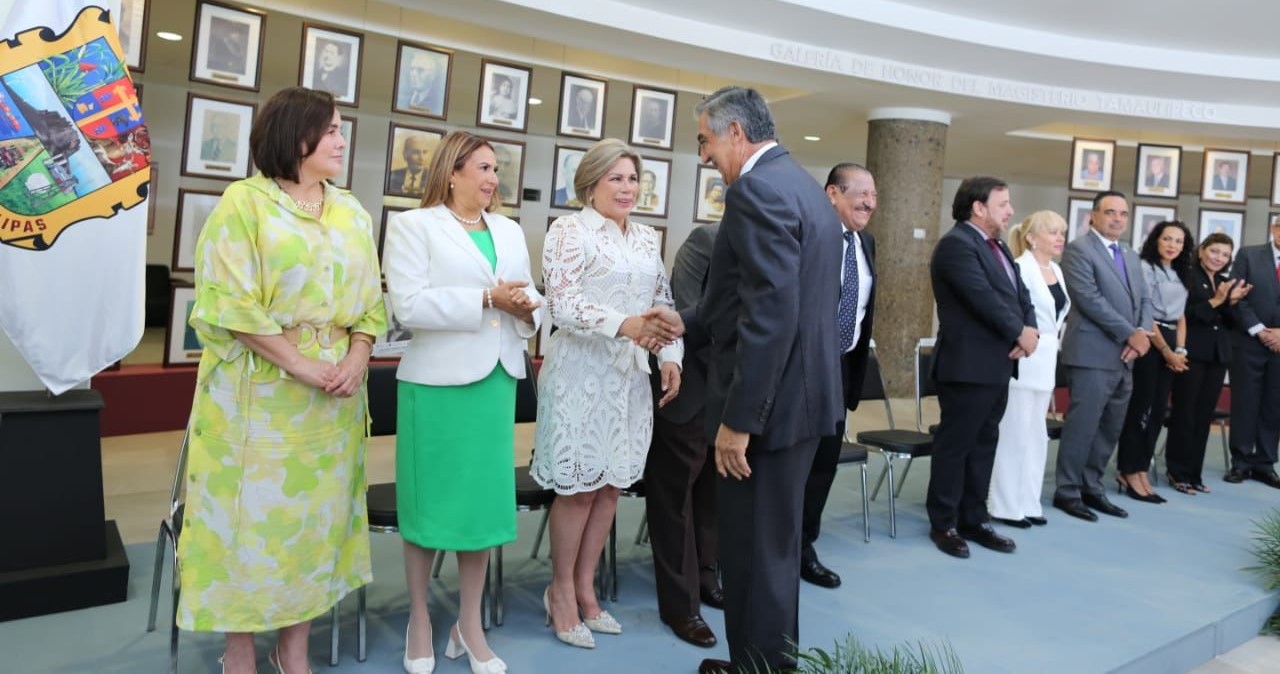 “Al develar las fotografías de las nuevas integrantes de esta Galería de Honor del Magisterio Tamaulipeco, honramos no solo su trayectoria profesional, sino también el compromiso y la vocación que han forjado miles de historias y transformado innumerables vidas a través de la docencia, del trabajo en el aula, del mejoramiento del espacio escolar, de la enseñanza cívica, de la extensión del espacio escolar hacia la comunidad”, mencionó el gobernador.