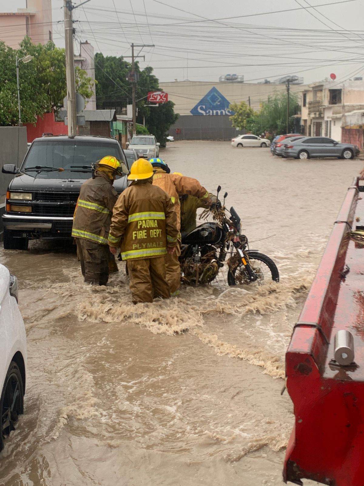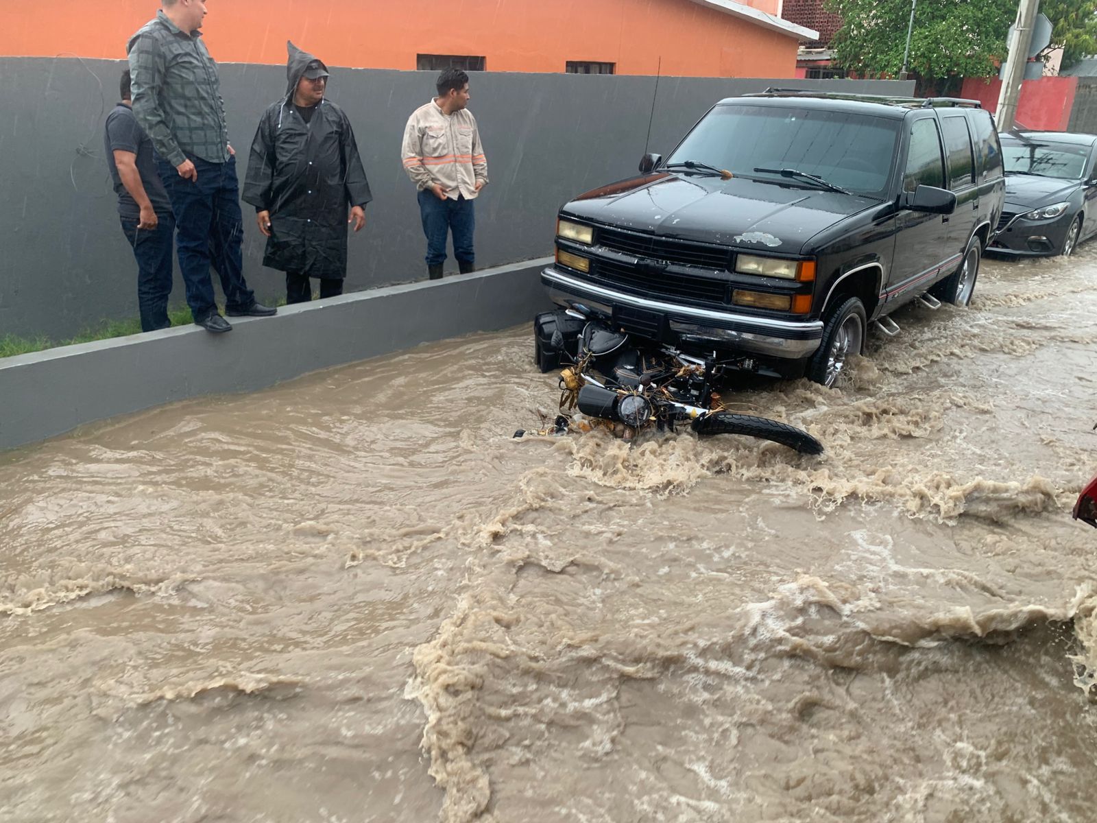 También en la Calle Jesús Elías Piña del Infonavit Fidel Velázquez, a la altura del C3, un motociclista fue auxiliado por personal de Bomberos y Protección Civil tras ser arrastrado y quedar atrapado por la creciente.