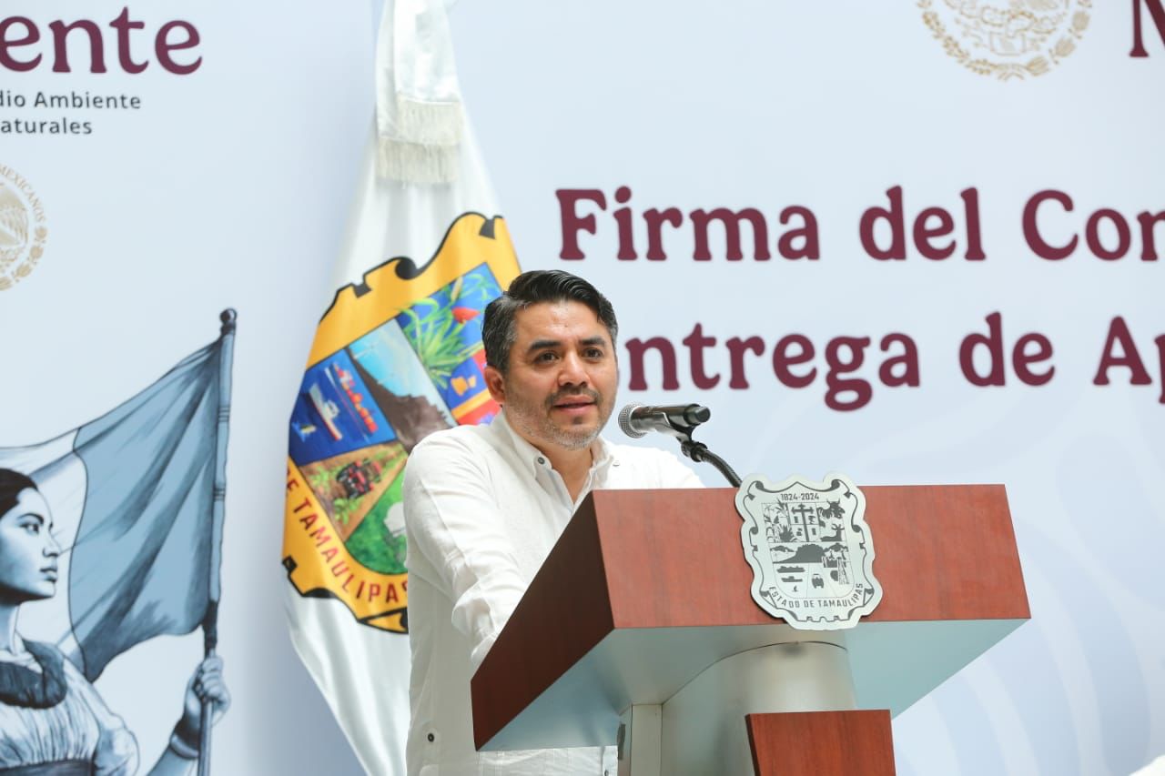También el director general de CONAGUA, Efraín Morales López, reconoció el trabajo de gestión del gobernador Américo Villarreal Anaya, quien, en los primeros meses de labor conjunta, ha sido uno de los más insistentes en la atención de la problemática de su entidad en materia de agua y a hacer las aportaciones que competen al gobierno local, ” este tema lo trae en sus venas”, enfatizó, en alusión a que su padre el Ing. Américo Villarreal Guerra, fue un gran impulsor de las obras hidrológicas e hidroagrícolas del país y de Tamaulipas, desde la Subsecretaría de SARH y desde el gobierno de Tamaulipas.