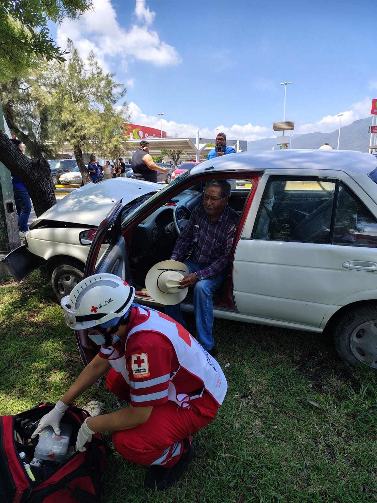 En el accidente, el conductor del automóvil Tsuru, resultó lesionado, por lo que fue atendido en el lugar por paramédicos de Cruz Roja Mexicana, que acudieron al lugar a bordo de la ambulancia 317.