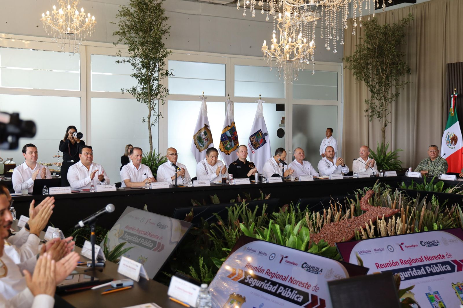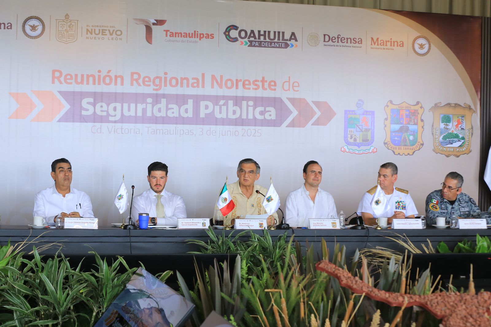 Entre los acuerdos que concretaron los mandatarios estatales y sus equipos de trabajo, durante la Tercera Reunión Regional Noreste de Seguridad Pública, que se realizó en el Museo Tamux de esta ciudad, destacan: fortalecer las acciones de seguridad en las ciudades fronterizas con Estados Unidos; reforzar los límites interestatales mediante operativos de patrullaje, inversión en infraestructura estratégica y fortalecimiento de redes de comunicación; incrementar la presencia operativa en las rutas hacia el sur del país e instalar una mesa de trabajo para analizar y promover estrategias de atención en la regularización de vehículos.