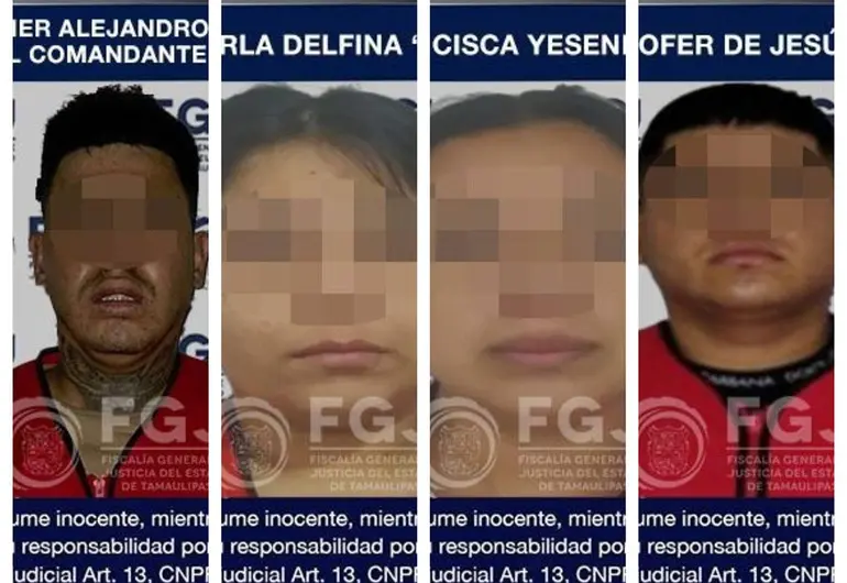 Los detenidos identificados como Perla Delfina “R”, Francisca Yesenia “V”, Cristofer de Jesús “M” y Javier Alejandro “T”, alias “El Comandante Junior” y cabecilla de la banda fueron arrestados.
