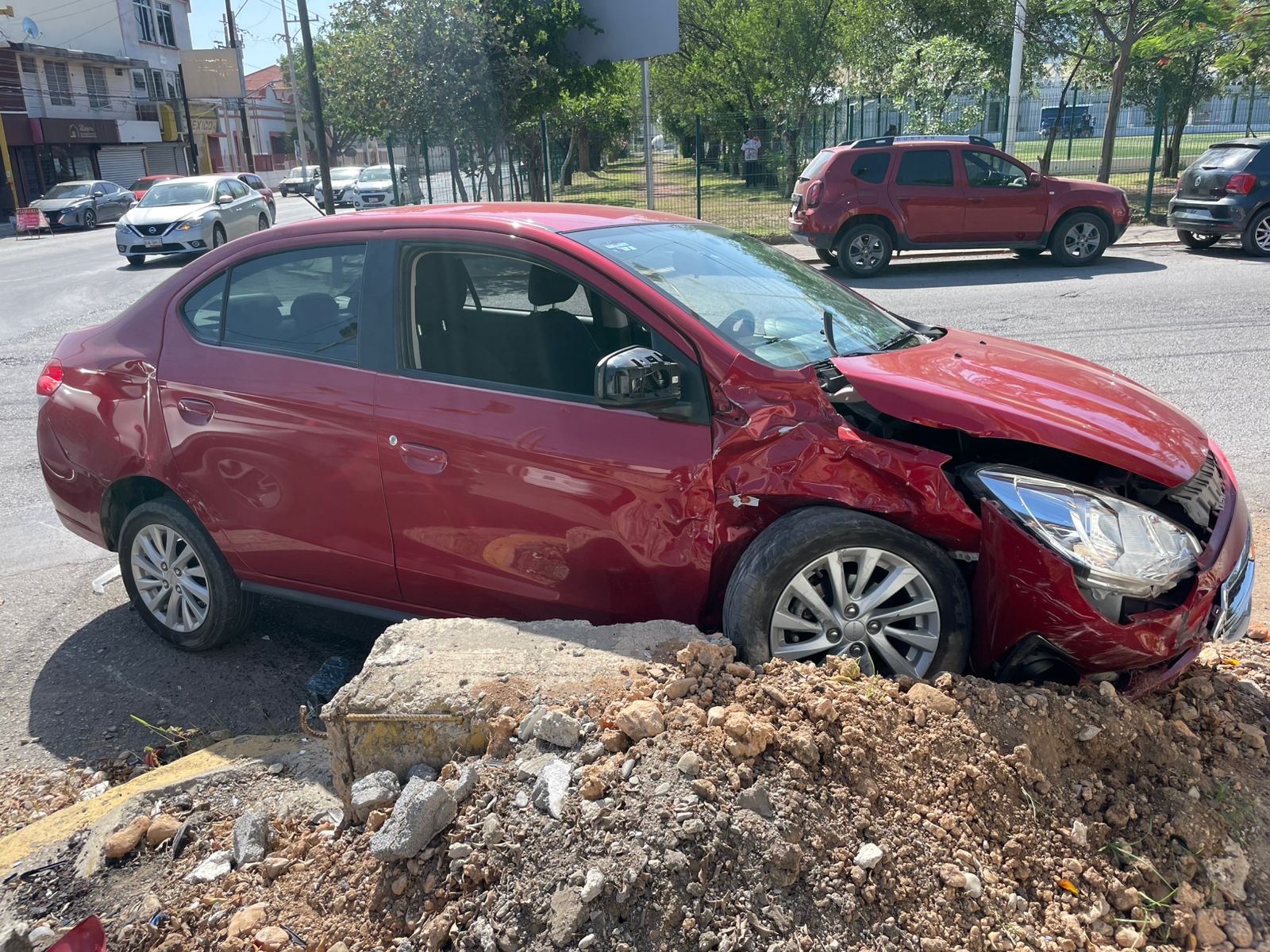 Con un saldo de cuantiosos daños materiales, el accidente ocurrió cuando el automóvil Attitude de reciente modelo circulaba por Felipe Berriozábal en sentido de oriente a poniente.