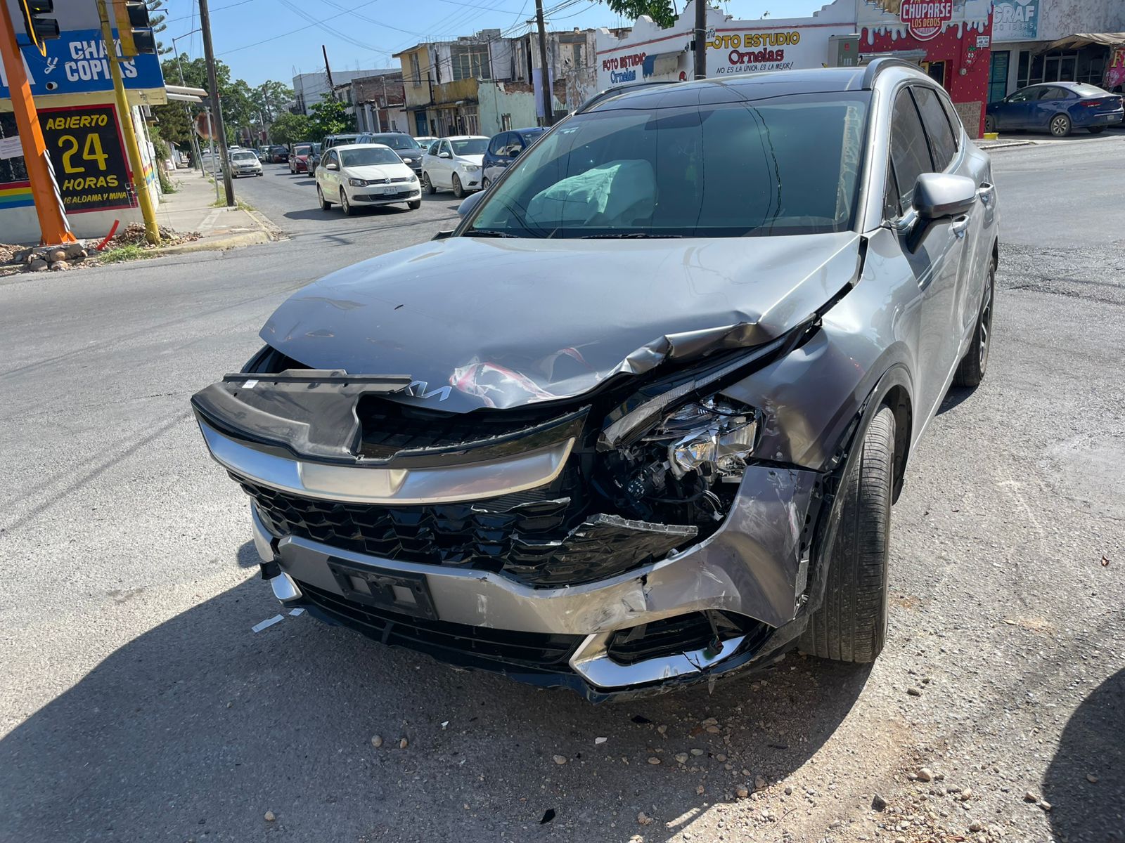Al llegar al crucero con la Calle 19, el conductor del Attitude intentó ganarle el cambio de luces del semáforo y se estrelló contra el costado de una camioneta de la marca Kia de reciente modelo que circulaba en sentido de norte a sur.