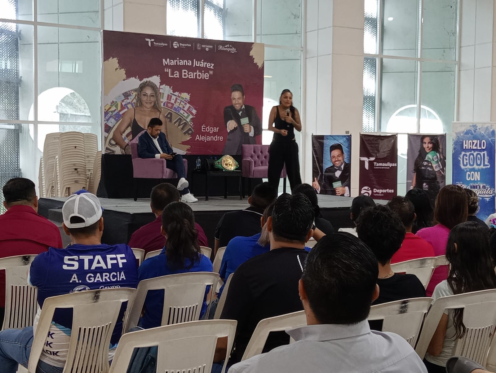 Reynosa, Tamaulipas.- Con el impulso del Instituto del Deporte de Tamaulipas, se realizó en Reynosa una jornada deportiva y formativa, que contó con la participación especial de la ex campeona mundial de boxeo, Mariana ‘La Barbie’ Juárez, y del analista de Televisa, Edgar Alexandre.